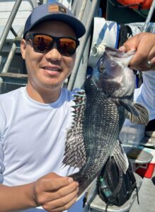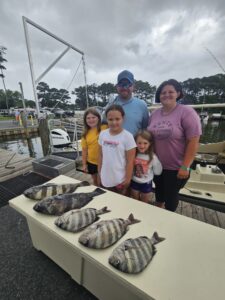 Captain Jason Mumford of Lucky Break Charters had two good trips today with flounder in the morning and then some very nice sheepshead and black drum this afternoon.