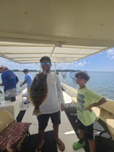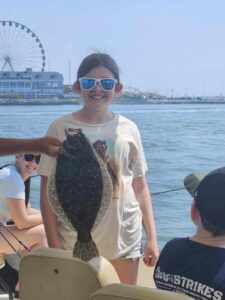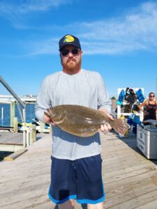 This nice keeper flounder was caught on the Calico Jack this afternoon with Captain Drew at the helm.