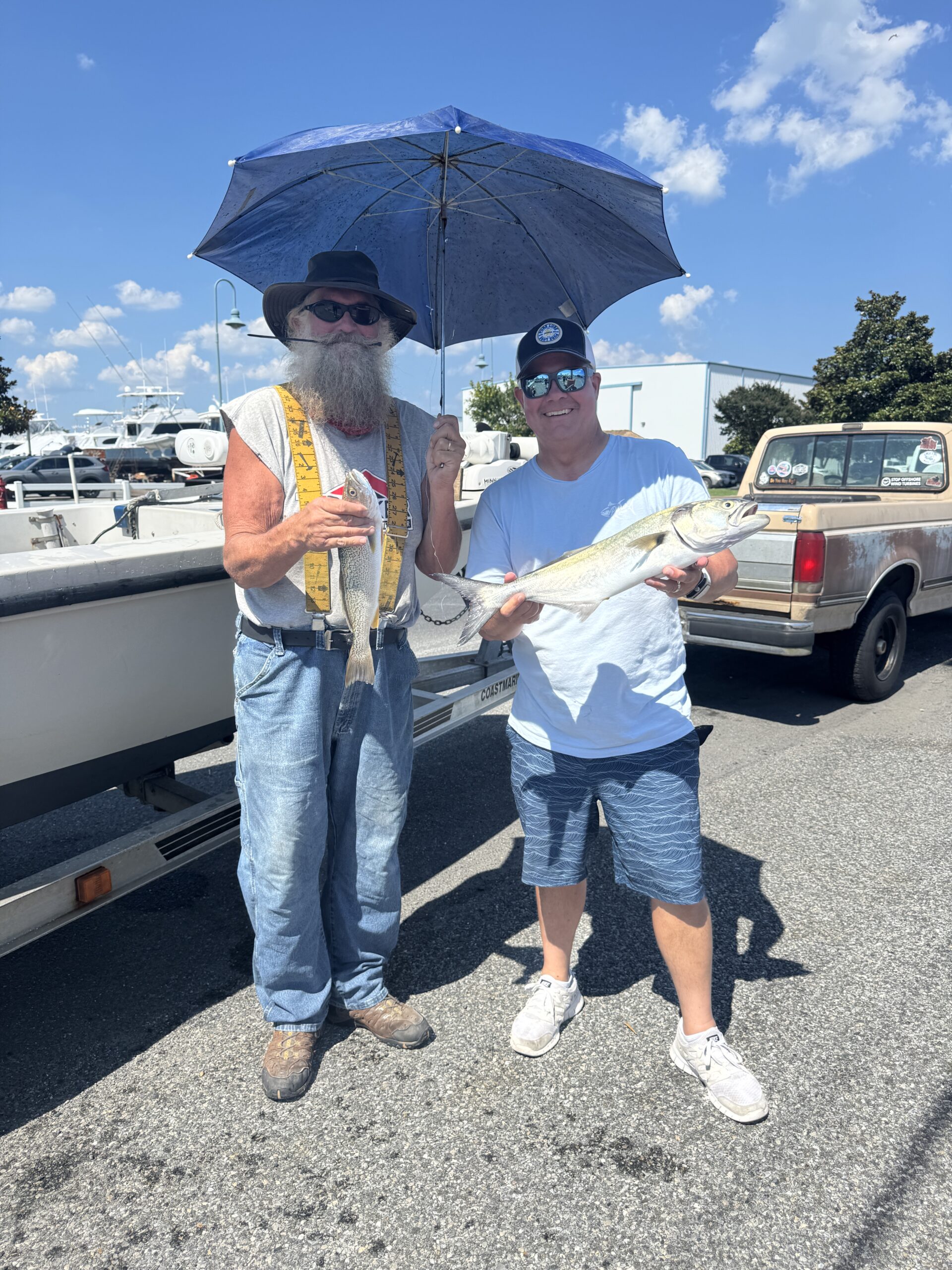 It was a hot one out there today, but with a little south breeze and some occasional cloud cover it was a nice day to be on the water. I got to go fishing with my buddy Big Bird Cropper for a new episode of Hooked on OC and it was a blast as usual. We had a limit of bluefish, one trout, some rockfish, a small flounder and an umbrella. Awesome time!