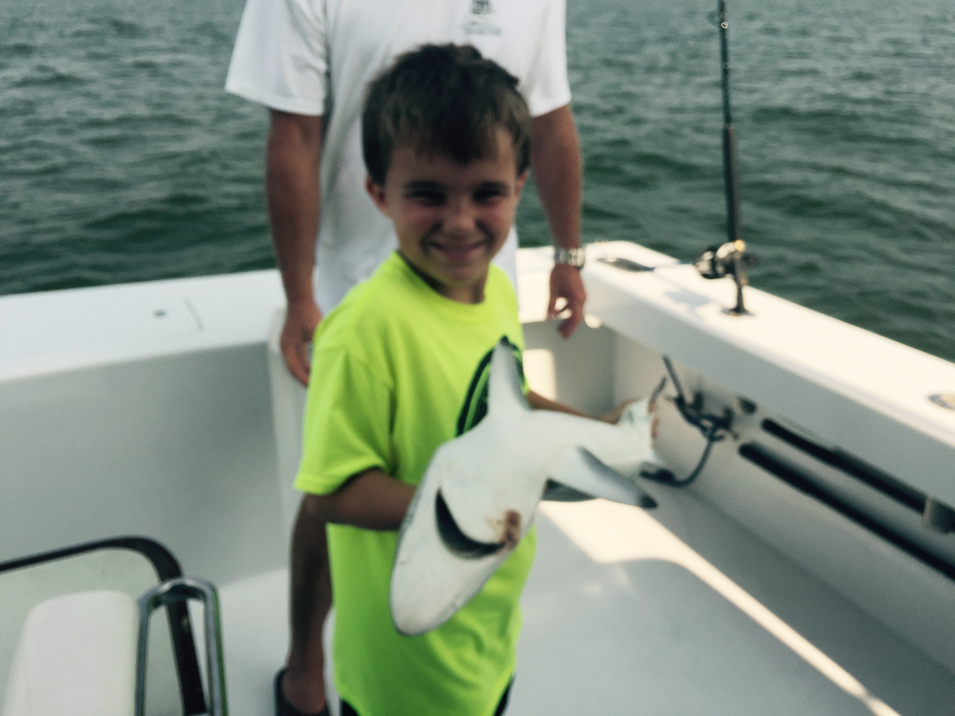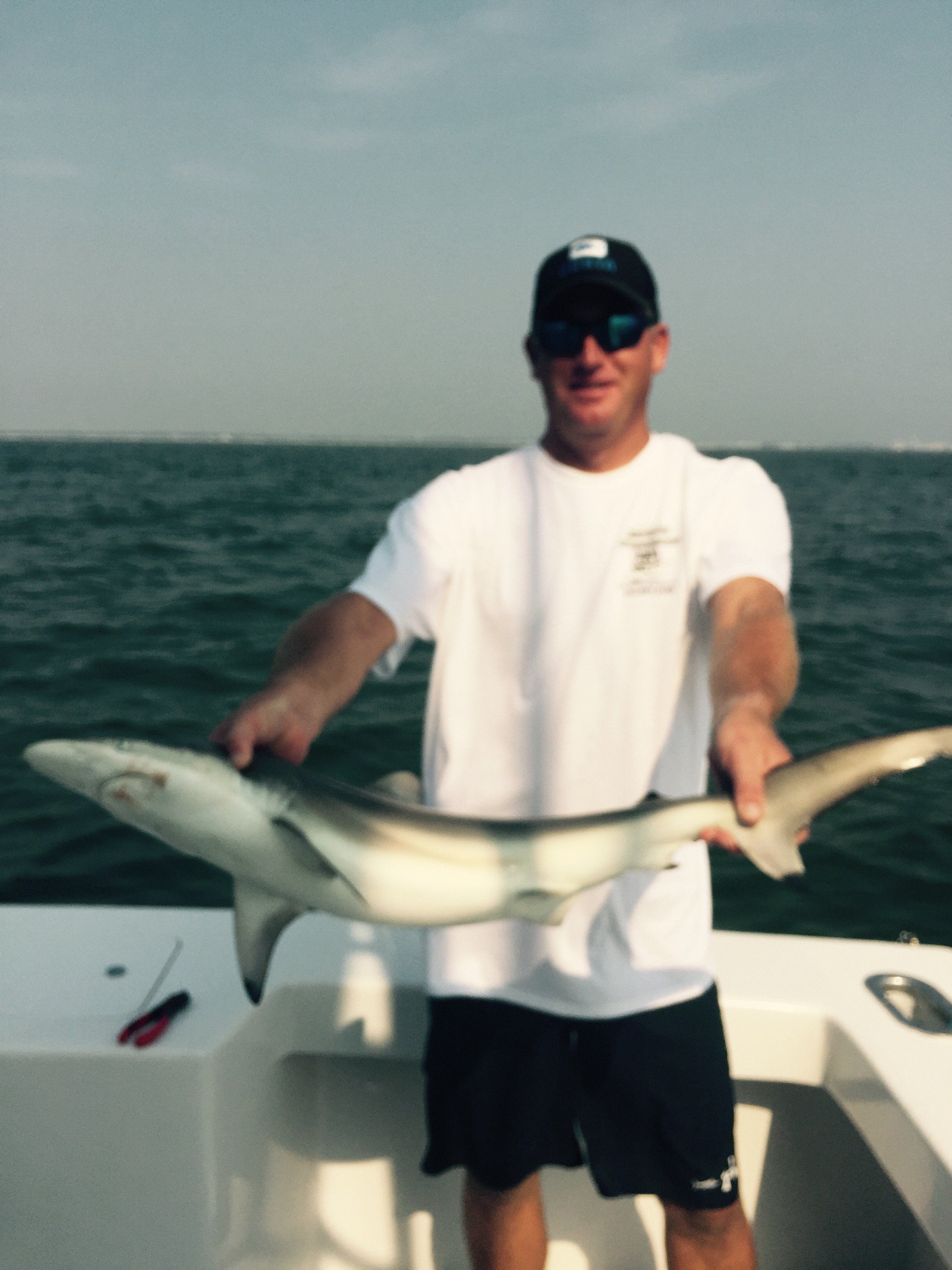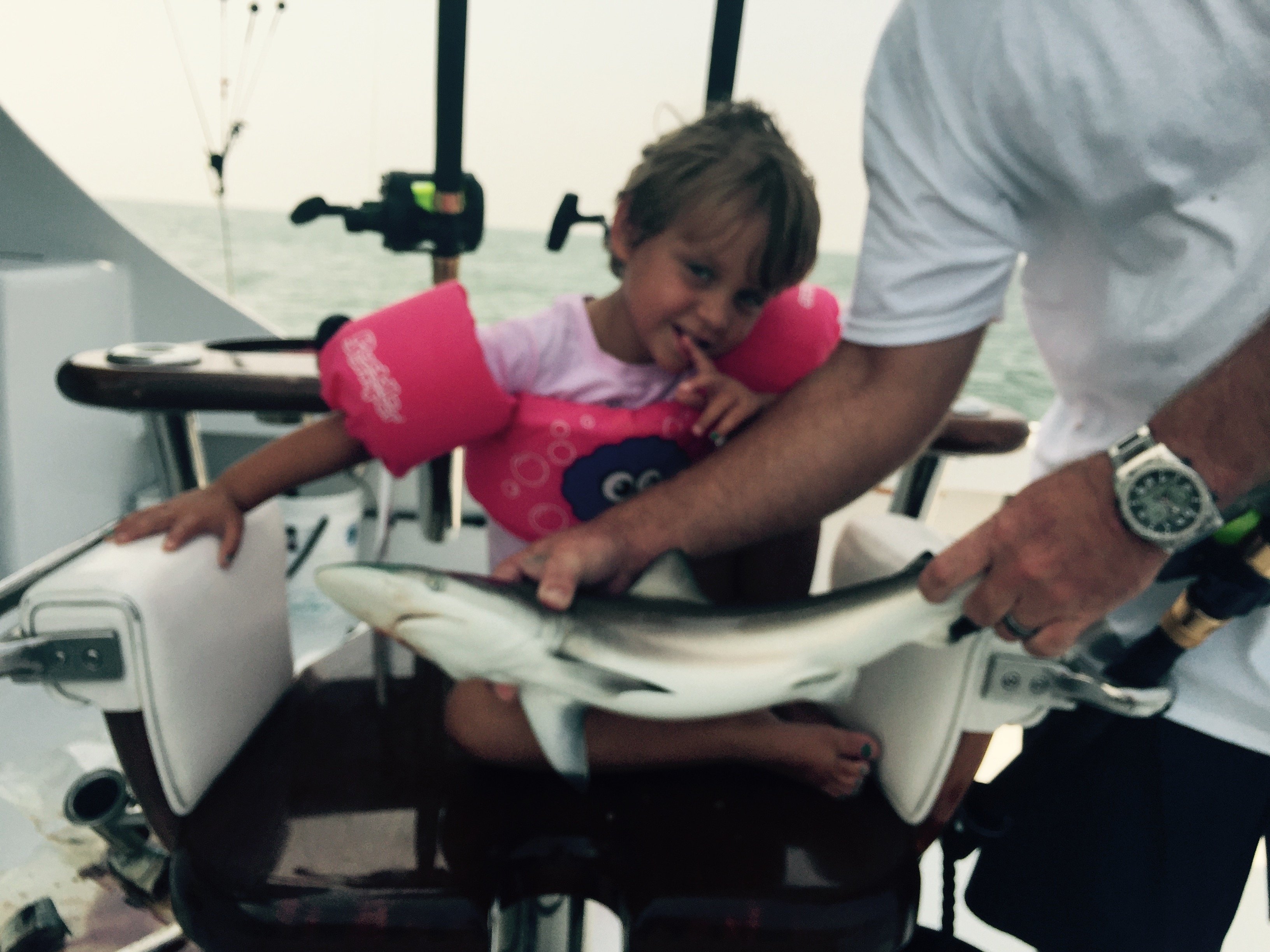 I had an opportunity to take my son Ryan out on the Wrecker today with Captain Jeremy Blunt and his daughter Piper for some inshore shark action. It was a real blast letting the kids catch a few sand sharks and a BUNCH of sharp nose sharks. Those little rascals pull hard for their size. Ryan (age 8) and Piper (age 3) were able to catch their first ever sharks, and Ryan was even brave enough to safely handle one and release it. It was a good time and the kids really enjoyed themselves.