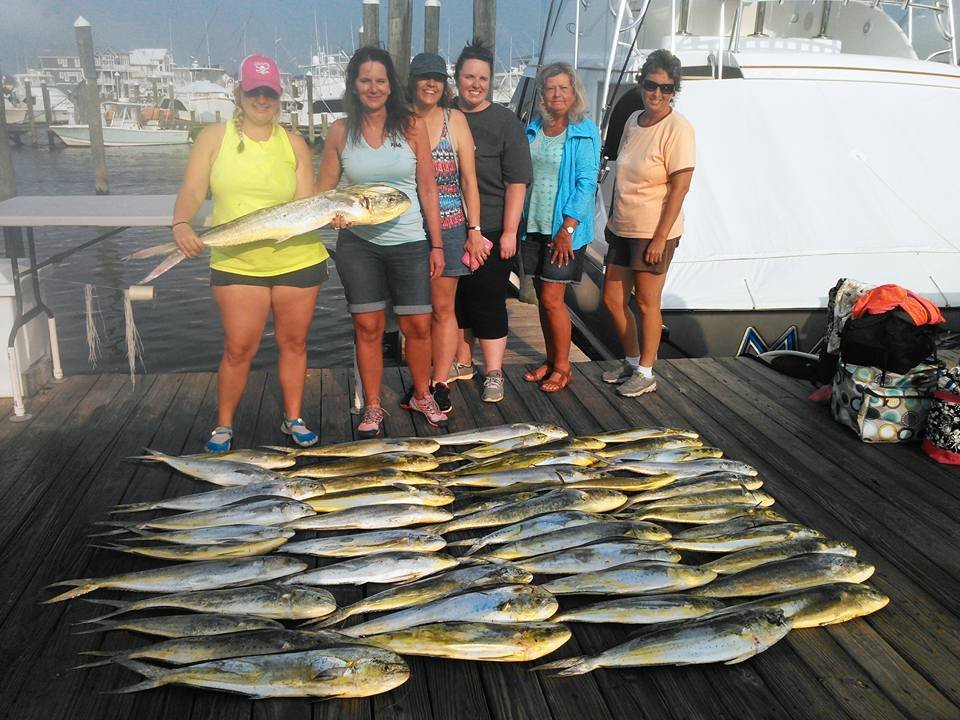 The White Lightning with Captain Luke Blume had a great day with the mahi once again today. He put his crew on a box full and had some nice gaffer size fish in the mix.