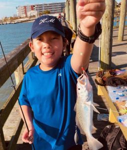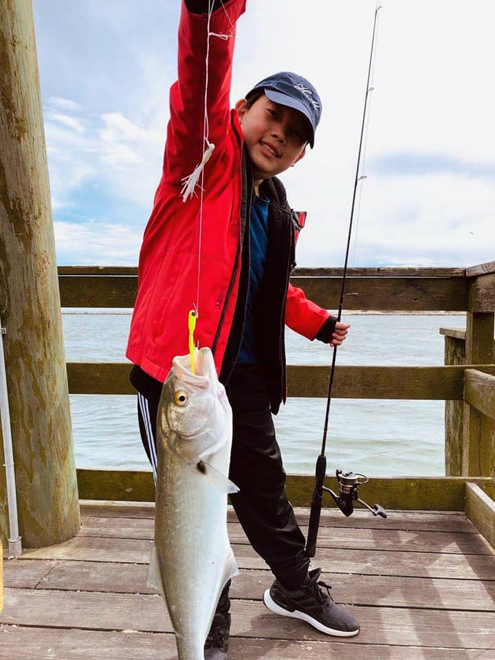 A great place to go fishing this weekend if you want to fish from shore is the Oceanic Pier in downtown Ocean City. The pier is open with restrictions so call ahead (410-289-2602) and fishing has been pretty good. Bob Haltmeier sent these photos in of some action for bluefish, shad, trout and rockfish that have been caught on the pier.