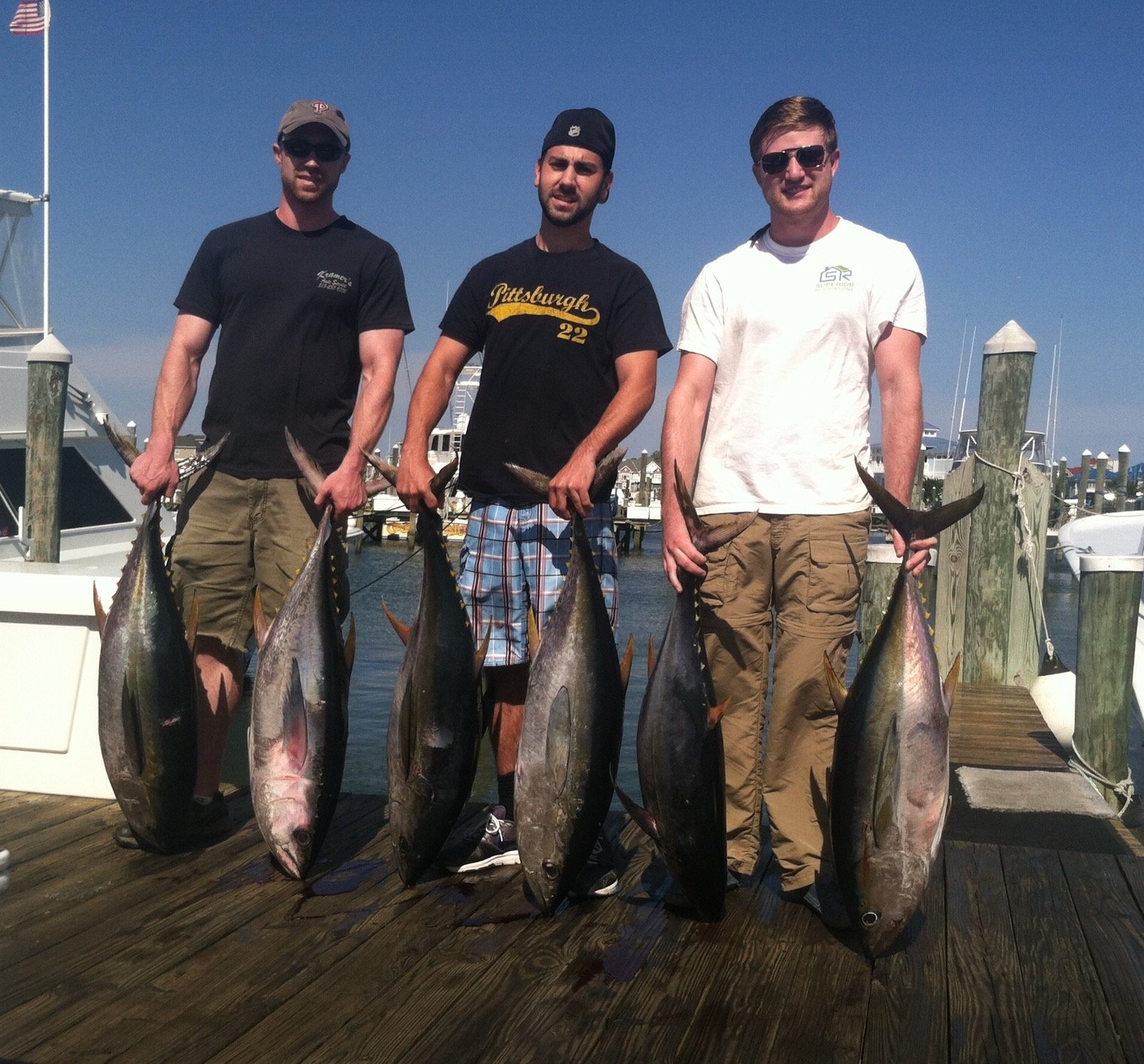 It was another fantastic day of fishing in the Baltimore canyon for yellowfin tuna today! Yellowfin in the 25-50 lb class are being caught in abundance on ballyhoo and spreader bars.