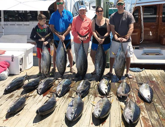 Wrecker Captain Jeremy Blunt 14 yellowfin tuna and one mahi (charter said let’s hit it at 10:30 am)