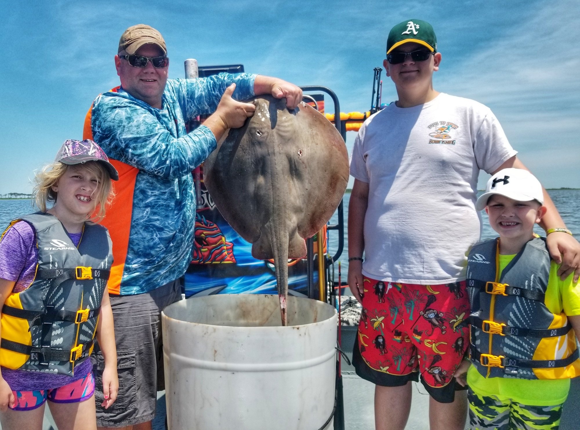 Shooters male and female, young and old have been having a great time with Captain Marc Spagnola of Dusk to Dawn Bowfishing. Captain Marc has been shooting both day and night and having great luck with cow nosed and southern rays and the occasional big houndfish.