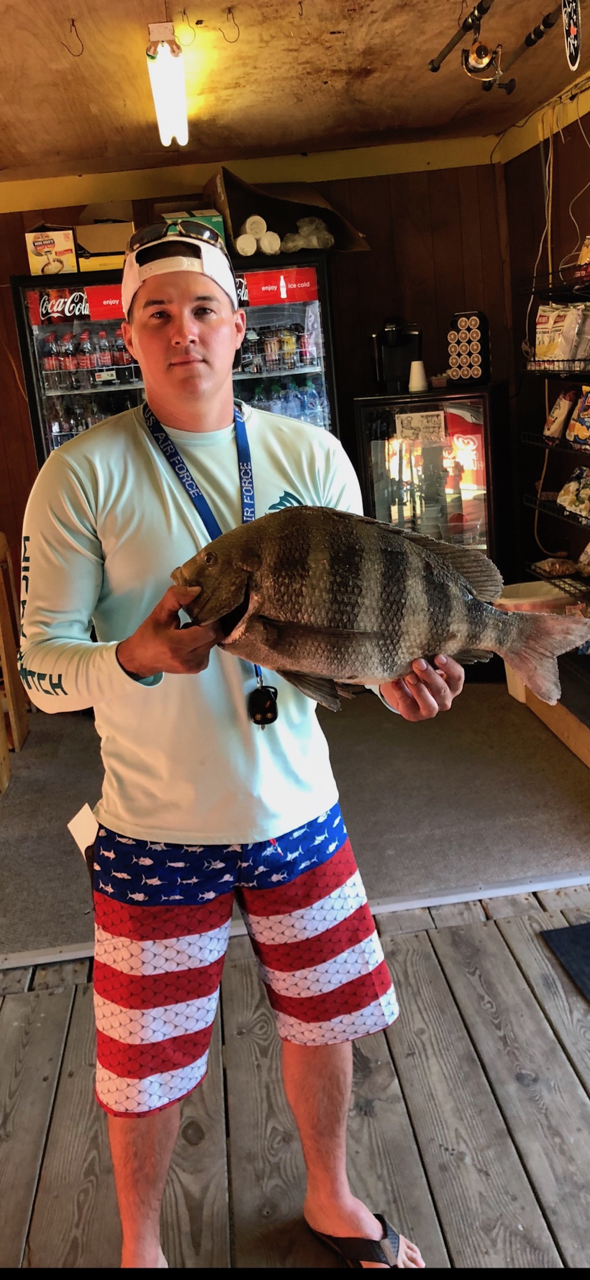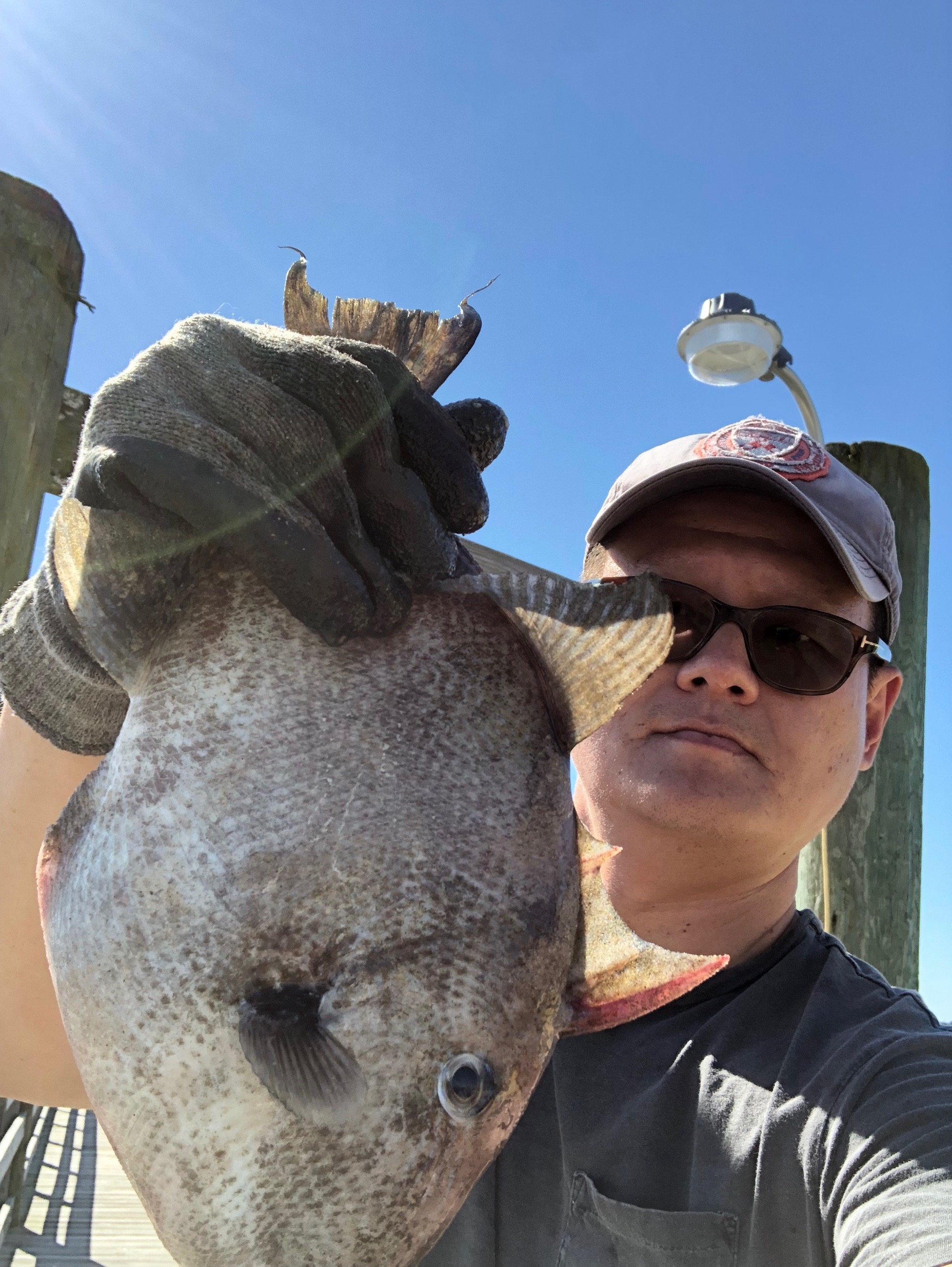 Bear down at the Oceanic Pier sent me two photos today of some nice catches. One was a nice 22″ sheepshead and the other was Howard with a nice triggerfish that he caught on a sand flea.