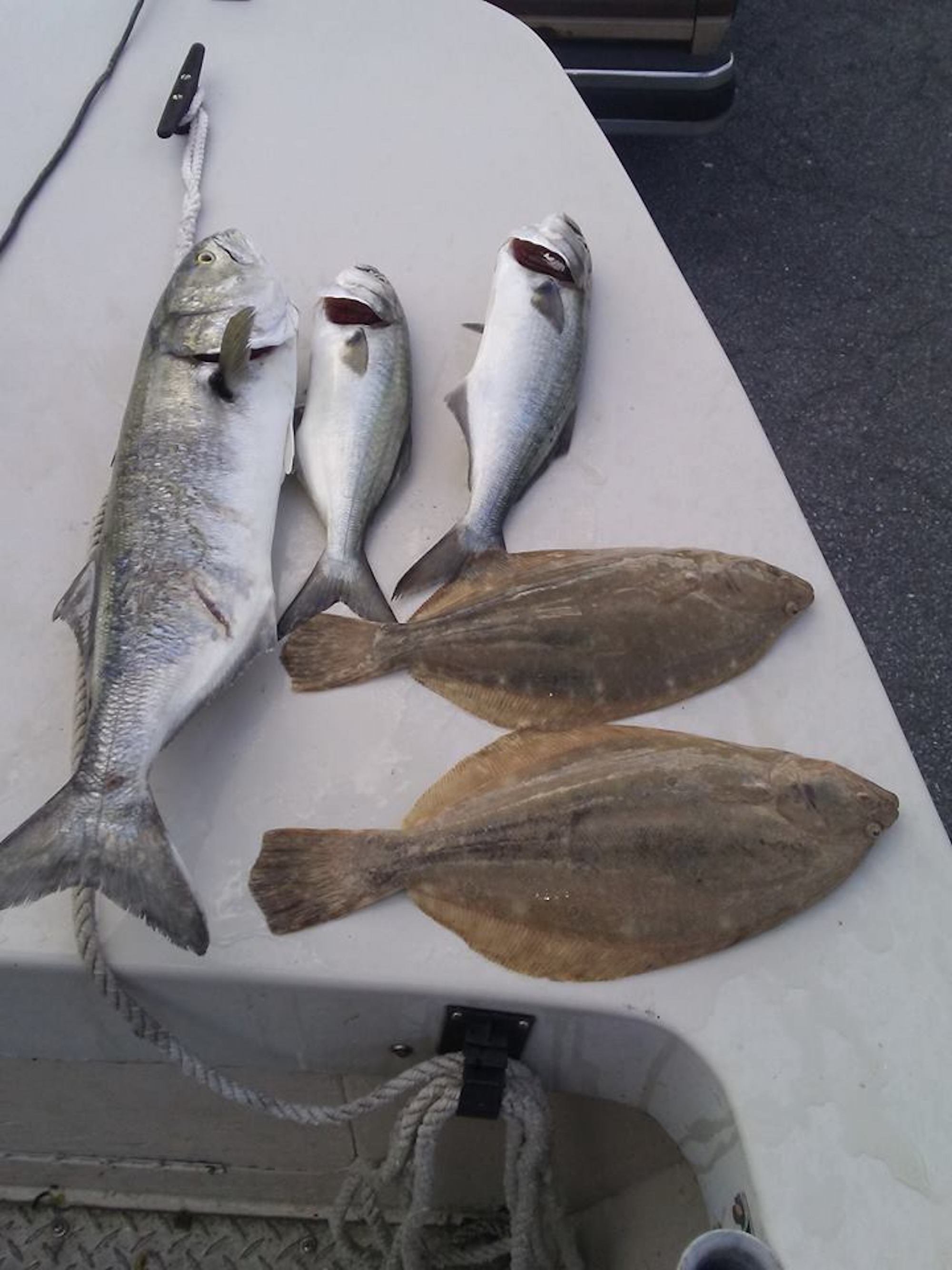Inshore fishing was good today as well in the beautiful conditions with loads of nice flounder being caught with some triggers and a couple of bluefish. My buddy Big Bird Cropper had some fun at one of his favorite spots when he released 9 small rockfish and kept two keeper flounder and three bluefish.