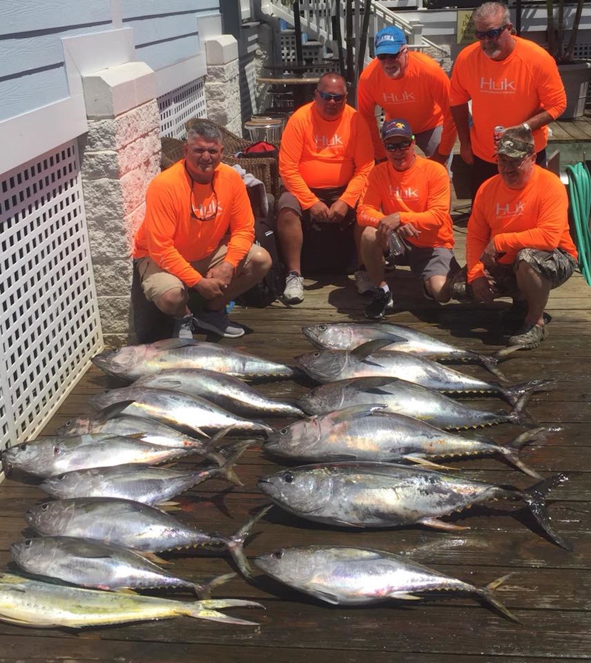 Pumpin’ Hard Captain Anthony Pino mates Mike and David Burt 17 yellowfin tuna and a gaffer mahi