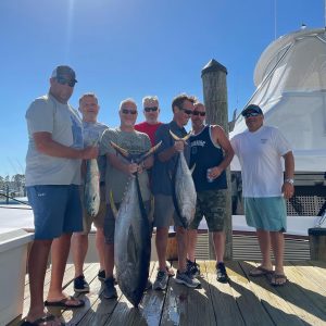 Captain Chris Little of the Talkin’ Trash managed a good day off the beach today putting two very nice yellowfin tuna in the box and a bunch of blueline tilefish.