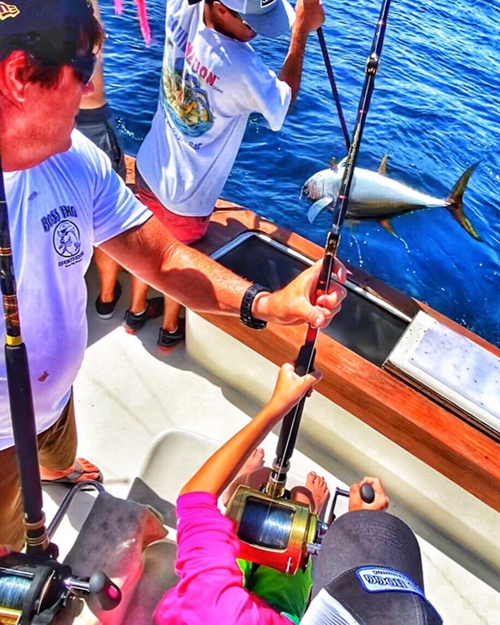 Captain Brian Porter and the crew of the Boss Hogg had some junior anglers on board today and the mates were slinging yellowfin tuna into the fish box for them.