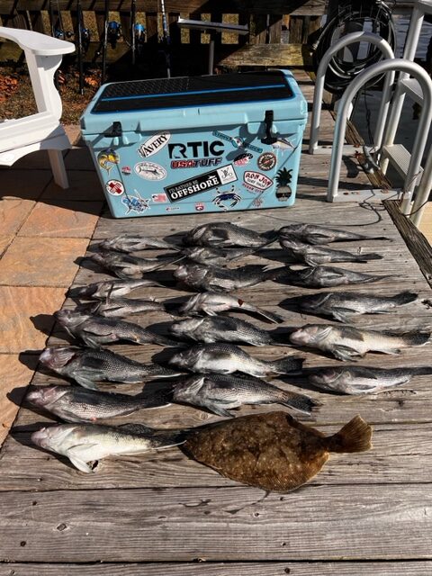 Steve Grauel and Tony had a nice catch of sea bass and keeper flounder today.