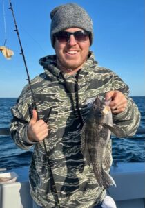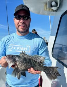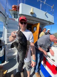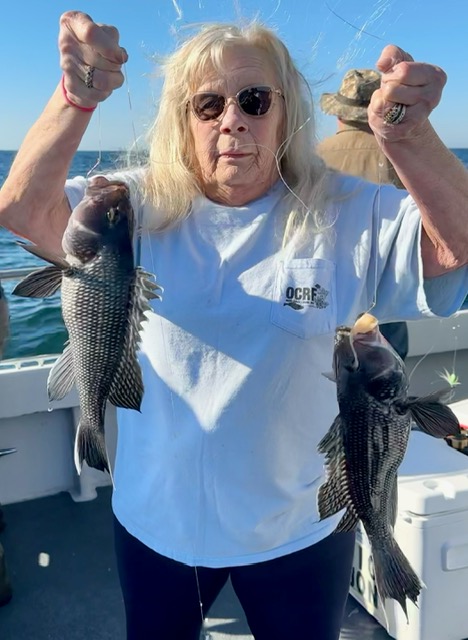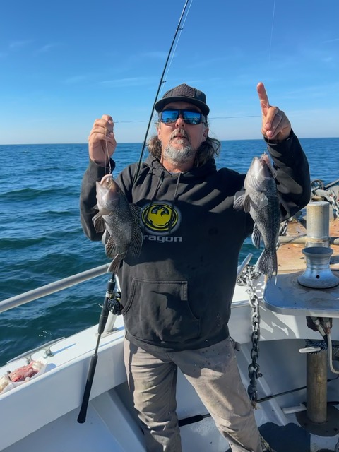 Captain, Chris Mizurak on the Angler reported a slow start this morning, but fishing picked up nicely with plenty of Seabass and some flounder limits around the rail this afternoon.