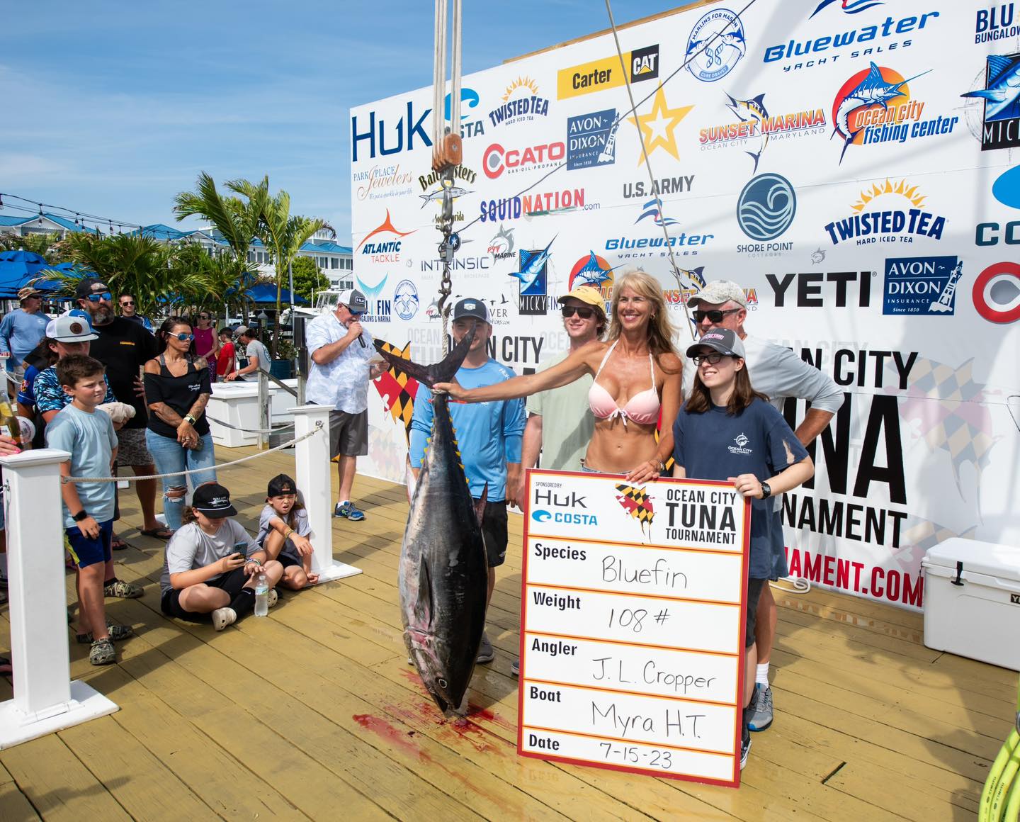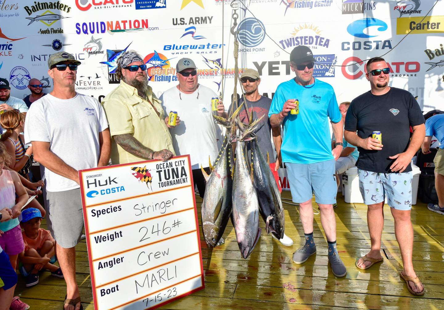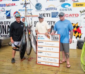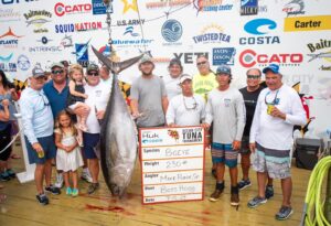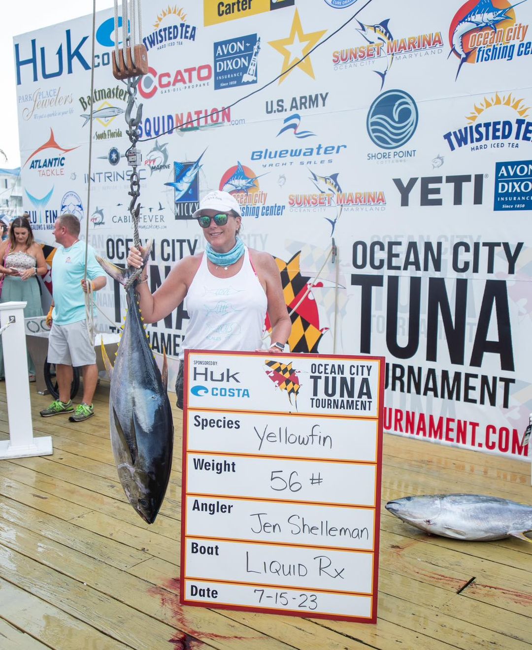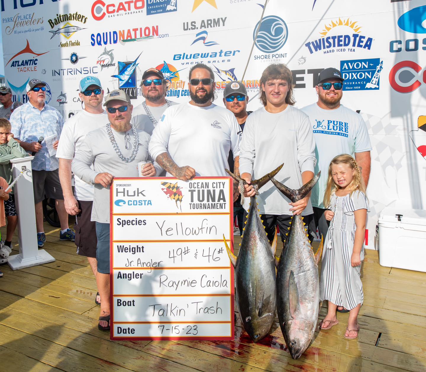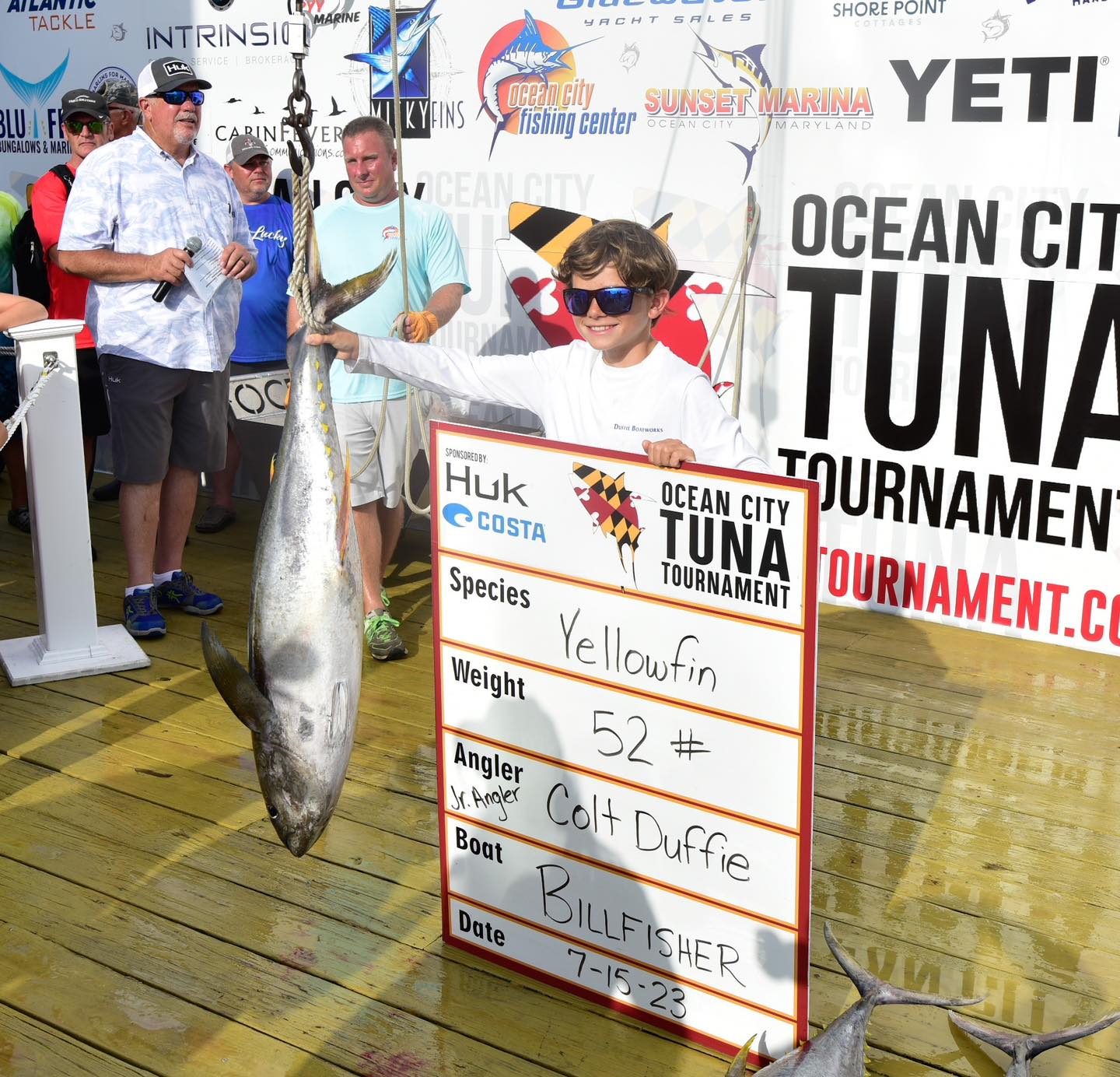 All but a few of the 74 boats entered in this year’s OC Tuna Tournament headed out to the ocean this morning despite the rough conditions and there seemed to be some very good fishing. Most folks said that things calmed down a little as the day went on, and that it was fishable and some boats made their way as far south as the Norfolk Canyon. It was another great day at the scales and there was some shakeup on the leaderboard. Here’s who’s leading what after two days of fishing. Thanks to the OC Fishing Center for the pics.