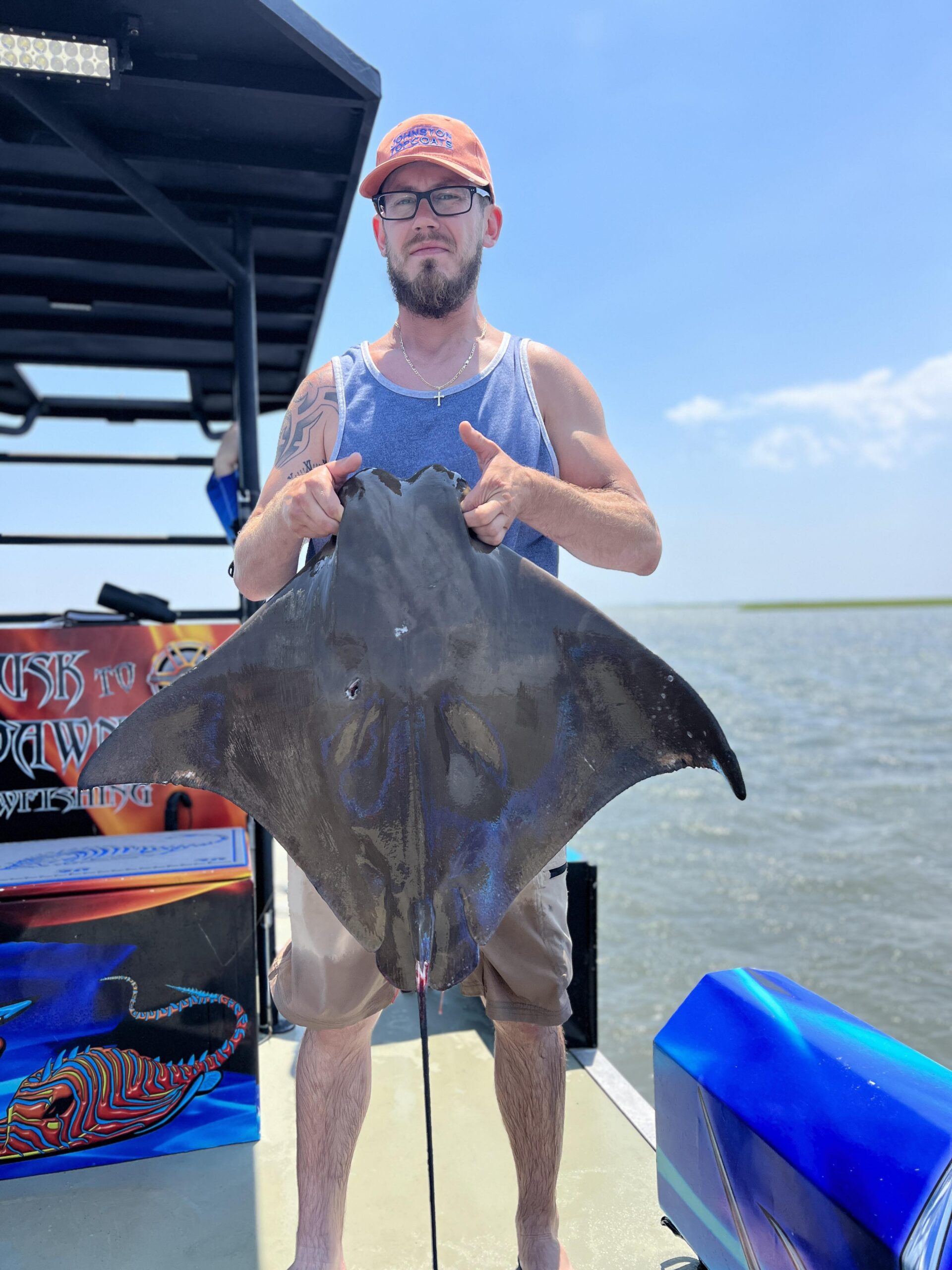 Captain Marc Spagnola of Dusk to Dawn Bowfishing had a great day in the south bay putting his shooters on some terrific ray action.