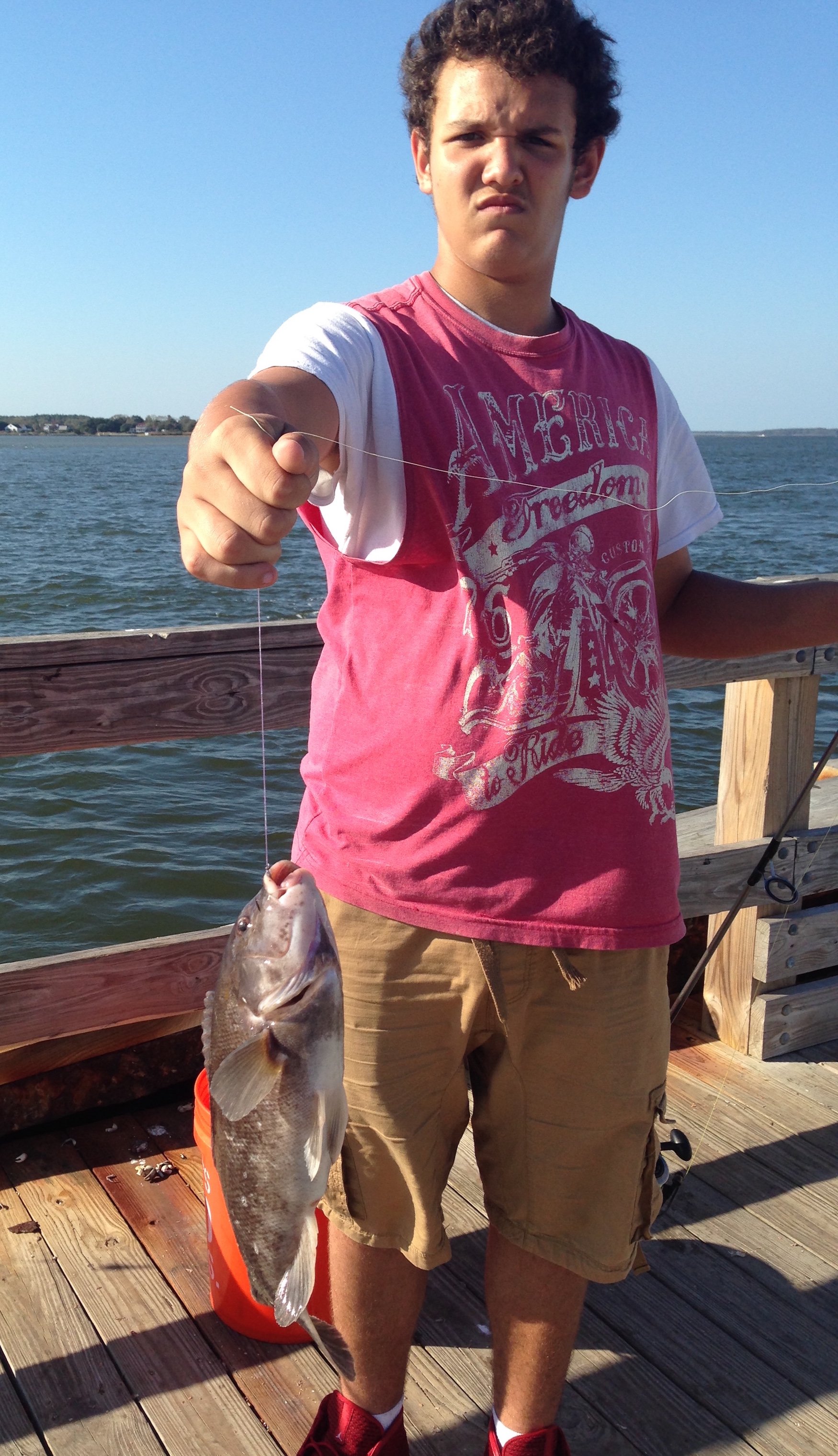 Bear at the Oceanic Pier reports that the flounder fishing from the pier is really good right now too. Marine Tom and Bob the webmaster had a good night last night catching shad, blues, flounder and tautog. The duo used a combination of spec rigs, sand fleas, green crabs and minnows. Bear’s son Joshua caught his first ever tautog on a green crab.
