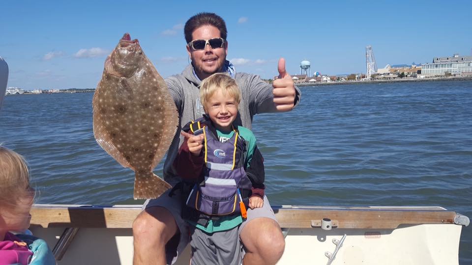 Mike and Colby Snedaker of Selbyville, DE caught this nice keeper flounder yesterday on a bull minnow on the outgoing tide in front of the Coast Guard station.