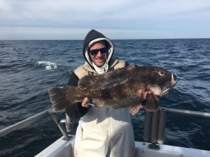 Had a nice pick on blackfish most of the day. Current slacked and the bite all but quit, but not before lots of double digit fish came across the rail.