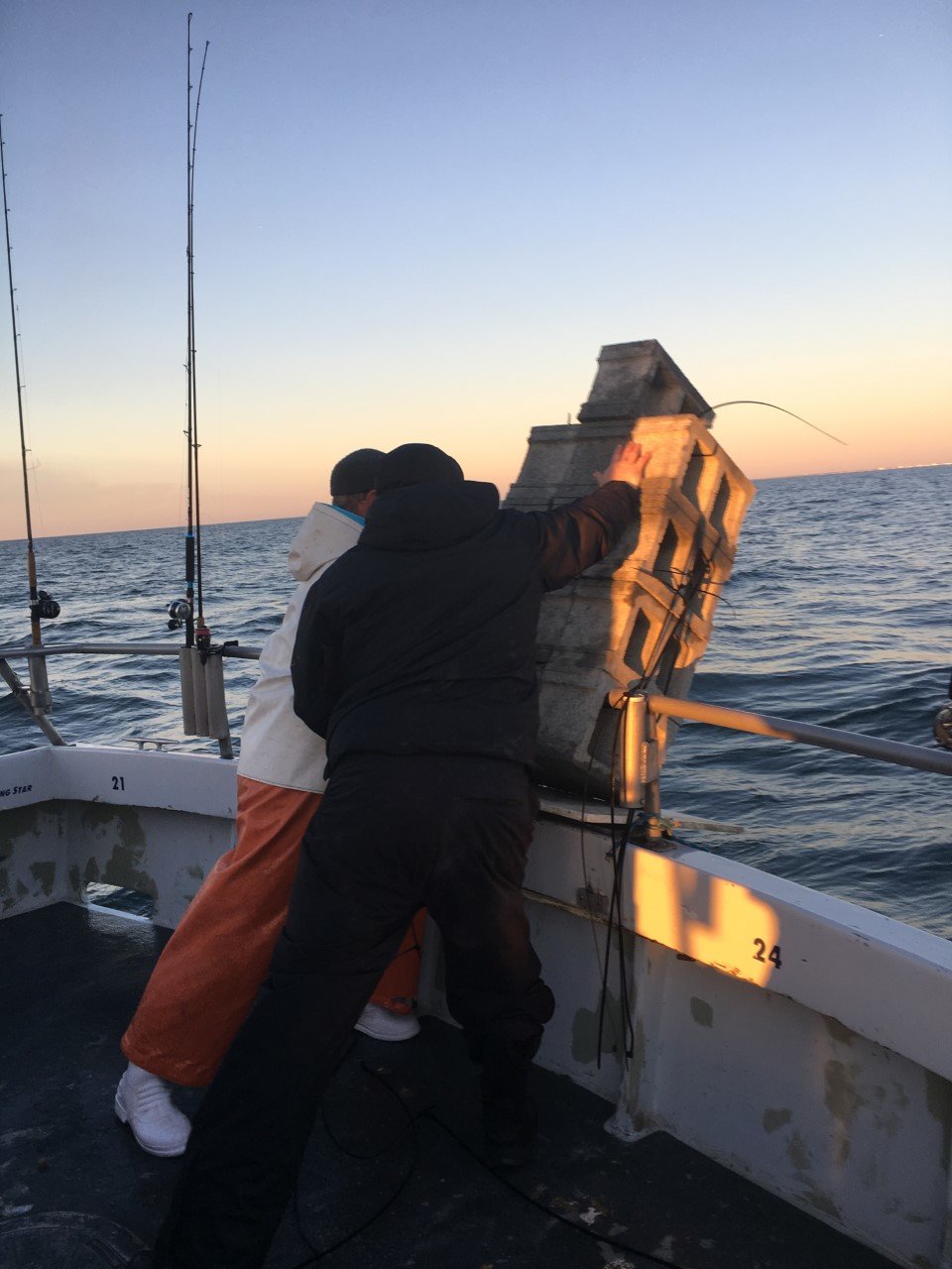 I got a couple of emails from Captain Monty Hawkins today with some reely great reports. Captain Monty put his clients on some jumbo tautog today and on the way out the crew dropped concrete block number 24,000 for the Ocean City Reef Foundation!!