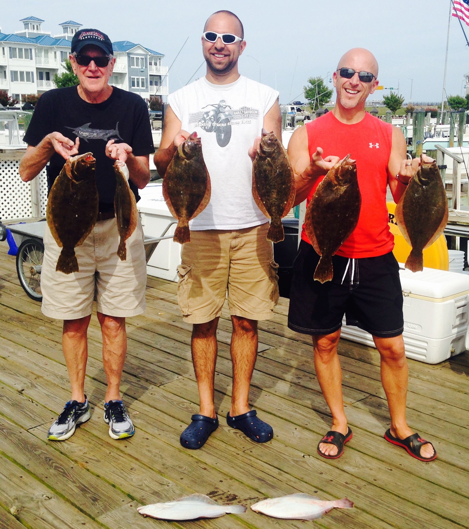 One person that is catching his parties some keeper flounder is Captain John Prather on Ocean City Guide Service. Captain John hit an inshore wreck again today and put this crew on eight keepers on strip baits.