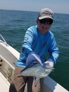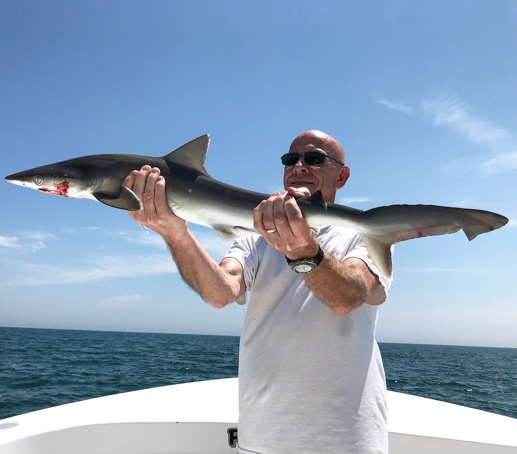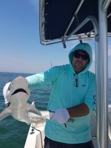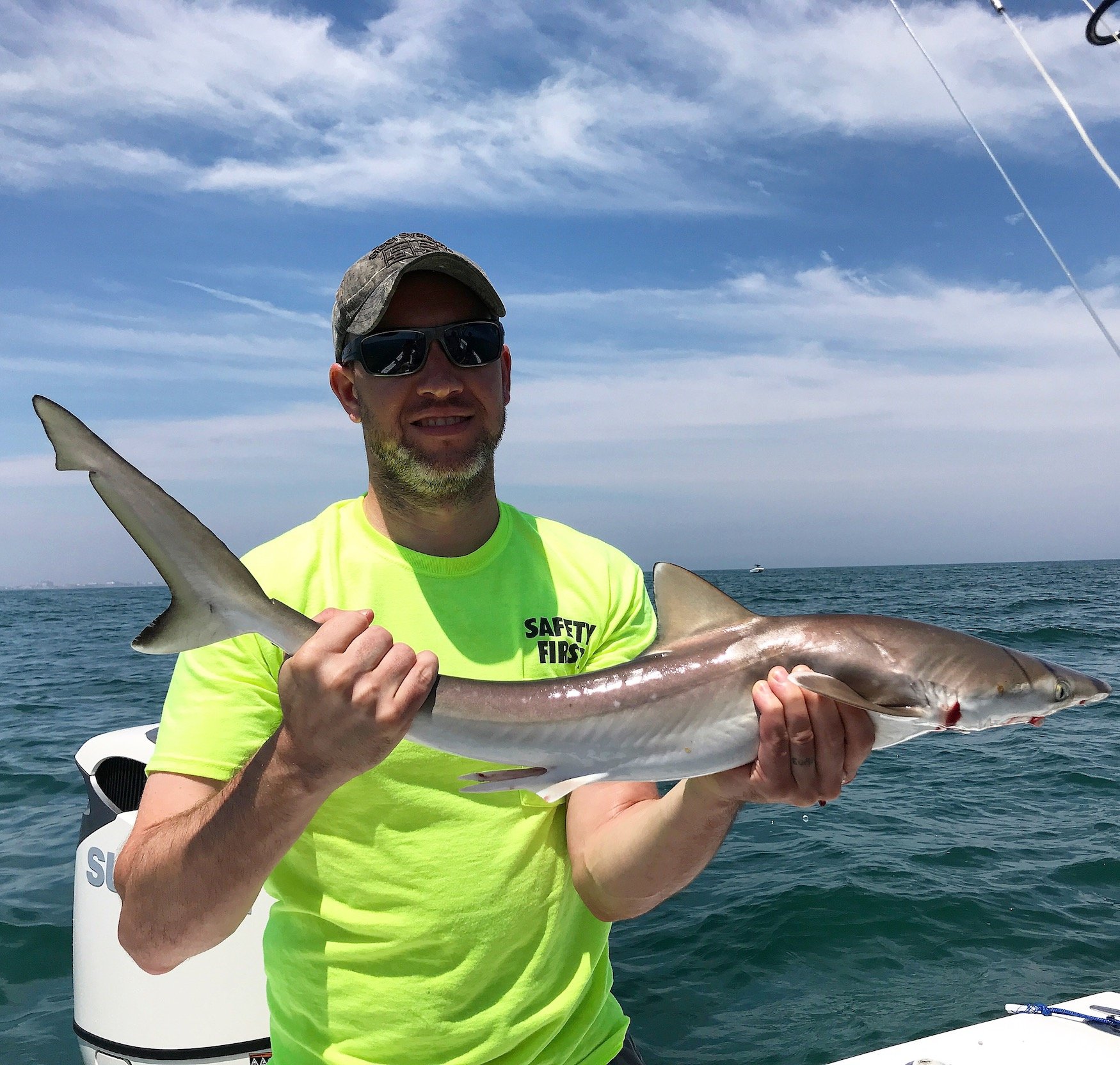 My best buddies Captain Luke Blume and Joshua hit the little gull bank today where Joshua caught his first ever cobia that was 30″ long and the guys released about 15 sharks.