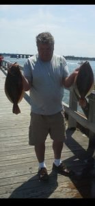 Bear down at the Oceanic Pier submitted this photo of a couple of nice keeper flounder that were caught on the 2nd street bulkhead on live spot.