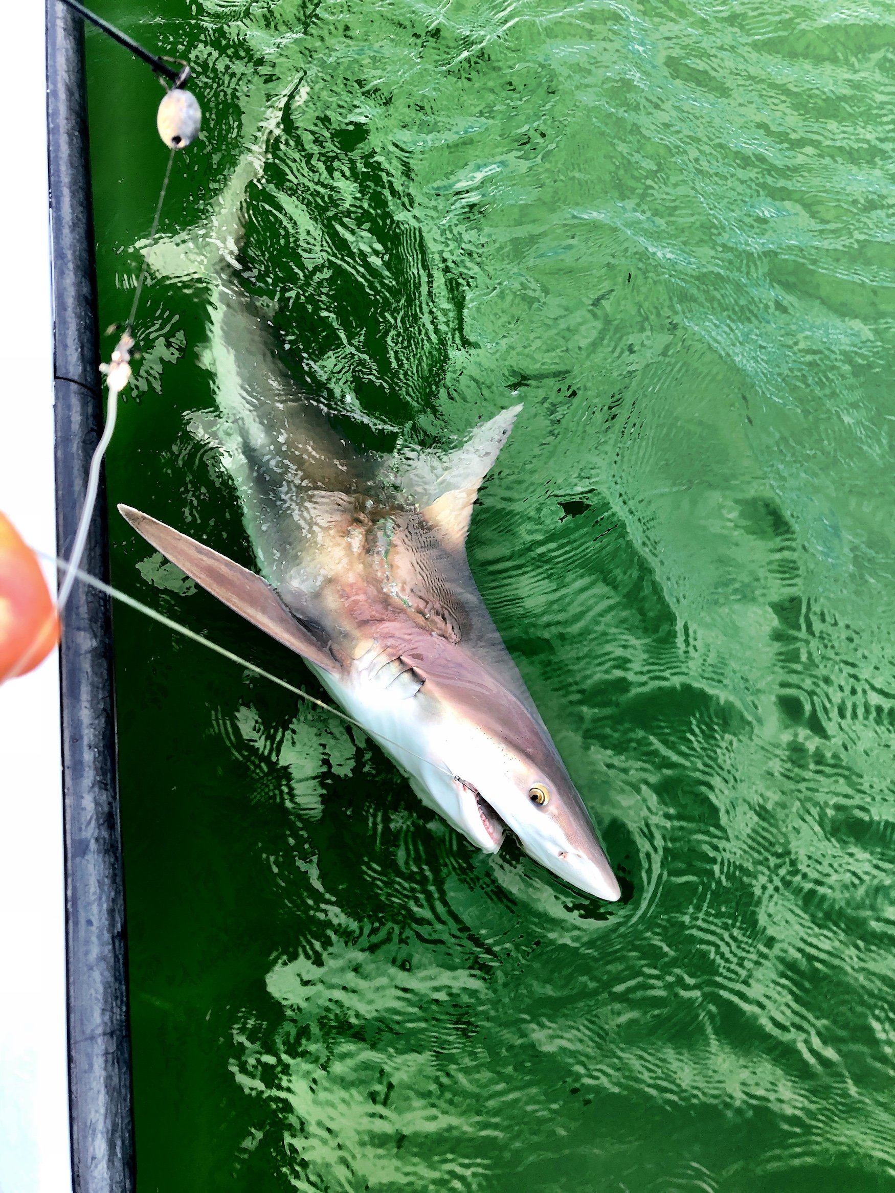Captain Jeff Coats of Pitboss Fishing had the Bad Influence on the ocean for some catch and release shark fishing as well today. Grandfather Rick Welch, son Joel and grandson Ethan had a fun time releasing Atlantic sharpnose sharks with Captain Jeff this afternoon.