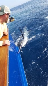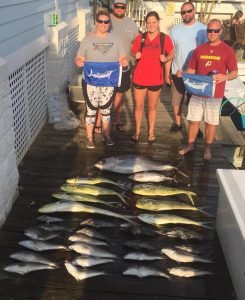 Captain Jeremy Blunt of the Wrecker had a terrific day on the ocean today catching fish from just about every level of the water column. The crew of Wrecker released two white marlin and boxed a yellowfin tuna, several mahi, some blue line tilefish and some nice sea bass.
