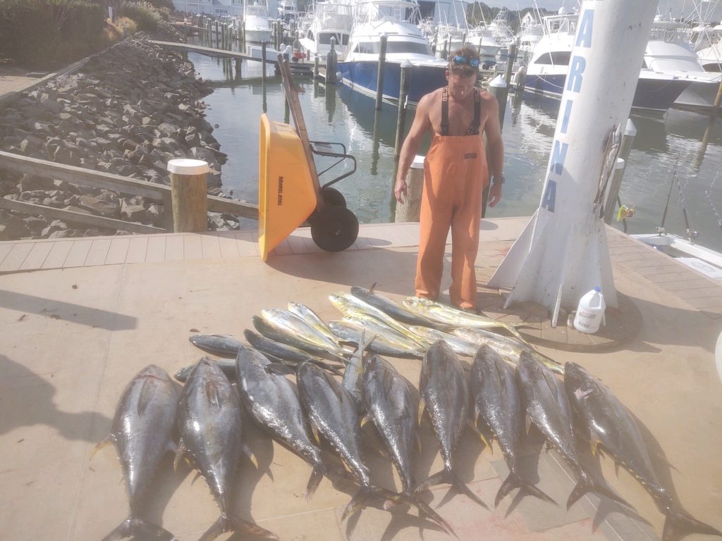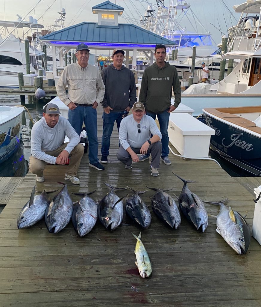 Captain Mike Burt of the Pumpin’ Hard had a good day for his anglers with 8 yellowfin and a Mahi.