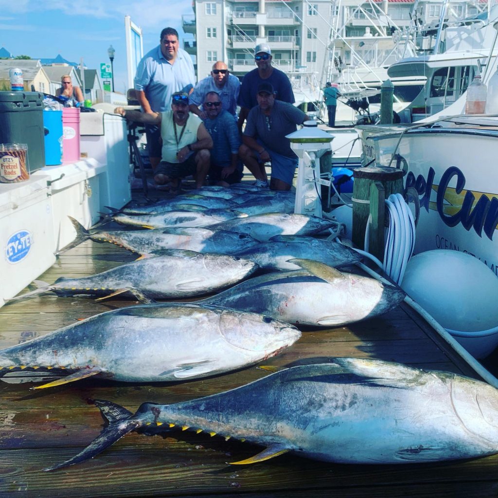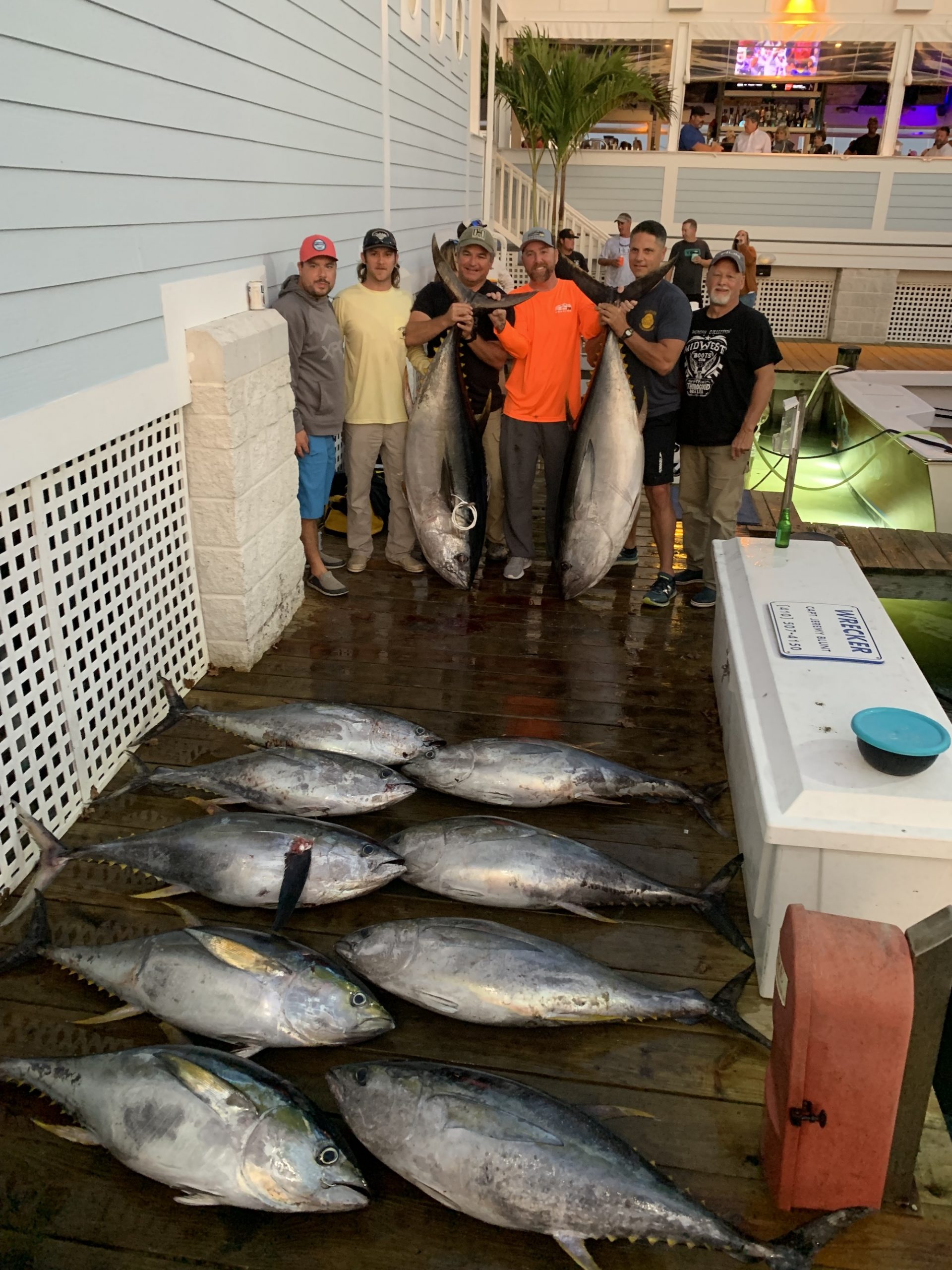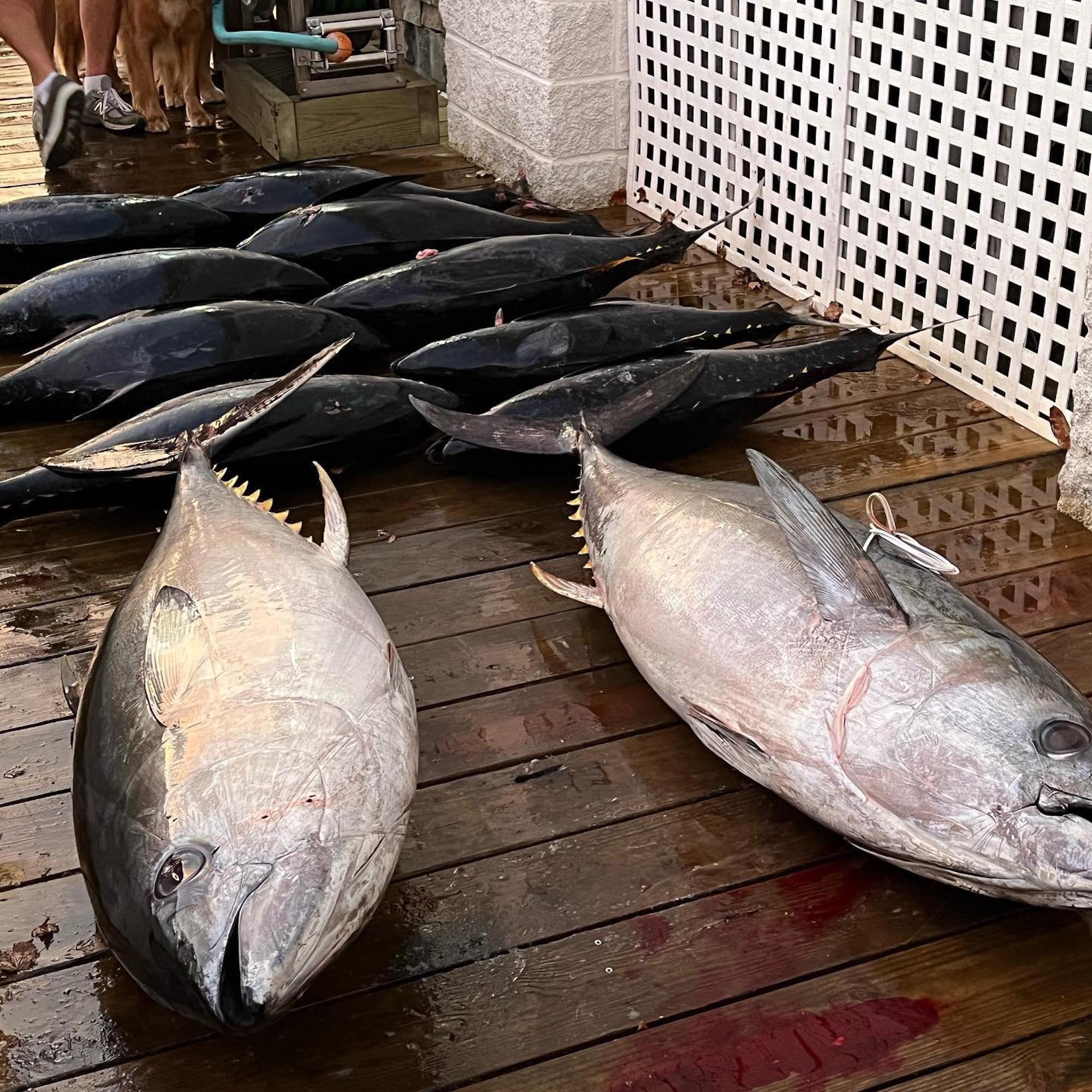 Captain Shawn Gibson and the crew of Reel Current had another awesome day of tuna fishing today with a lineup of fat yellowfin for the second day in a row.