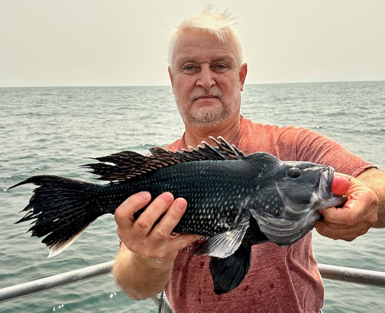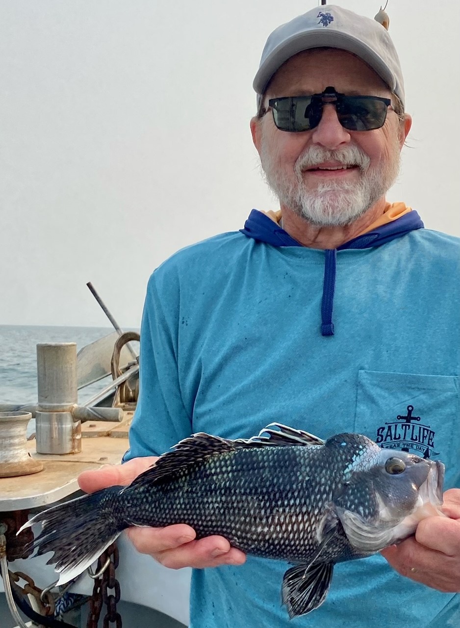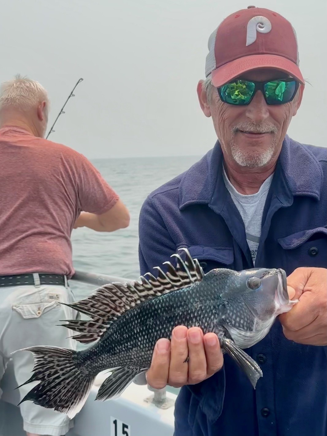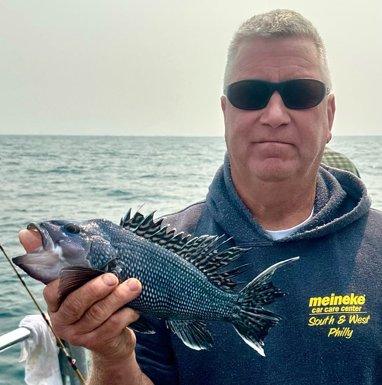 Captian Monty Hawkins of the Morning Star is certainly enjoying this nice stretch of weather and the sea bass have been cooperating as well.