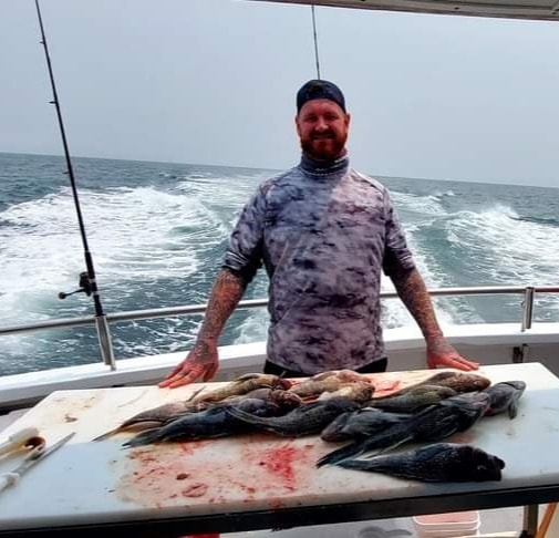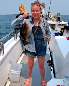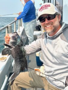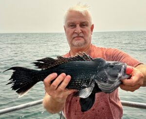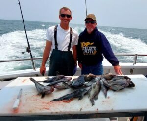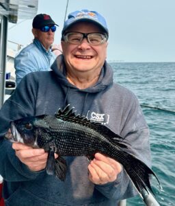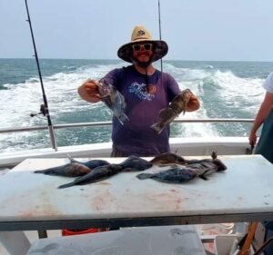 Captain Victor Bunting of the Ocean Princess had some good fishing on today’s trip too with lots of keeper sized sea bass going home with his anglers. Korale Filipiak from Dayton, Ohio also caught the first triggerfish that I’ve seen this season.