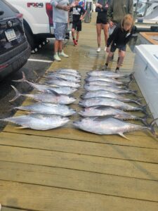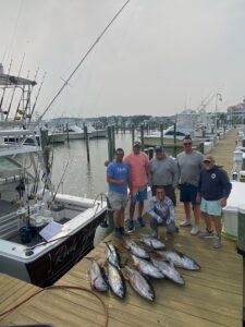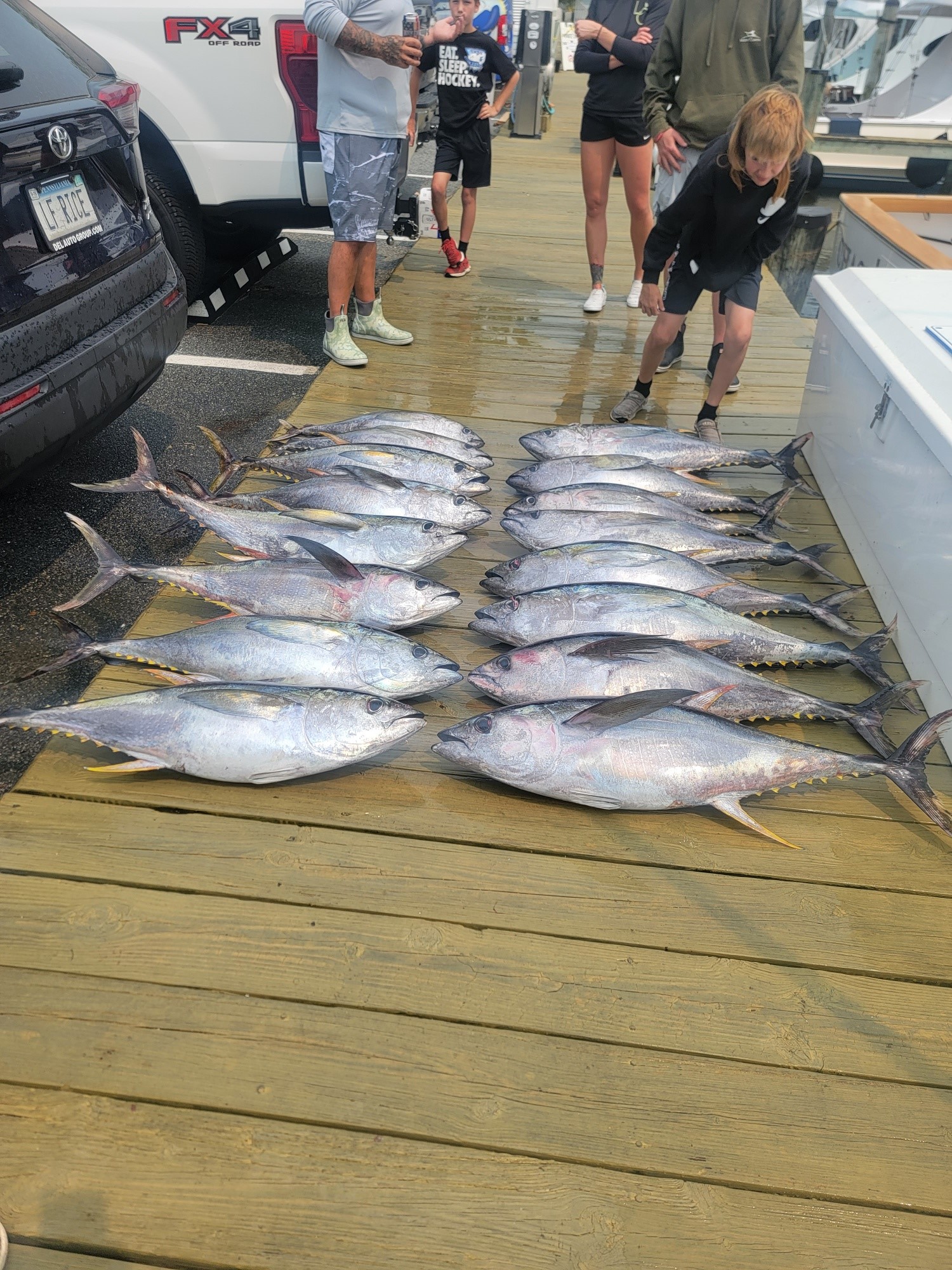 Captain Chris Little of Talkin’ Trash had another great day of tuna fishing today with 16 yellowfin tuna lined up on the dock at the Ocean City Fishing Center.![]()