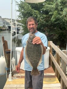 Levi Dunlap was excited when this 22″ flounder jumped on his orange Deadly Tackle Deadly Double while drifting in the Thorofare.