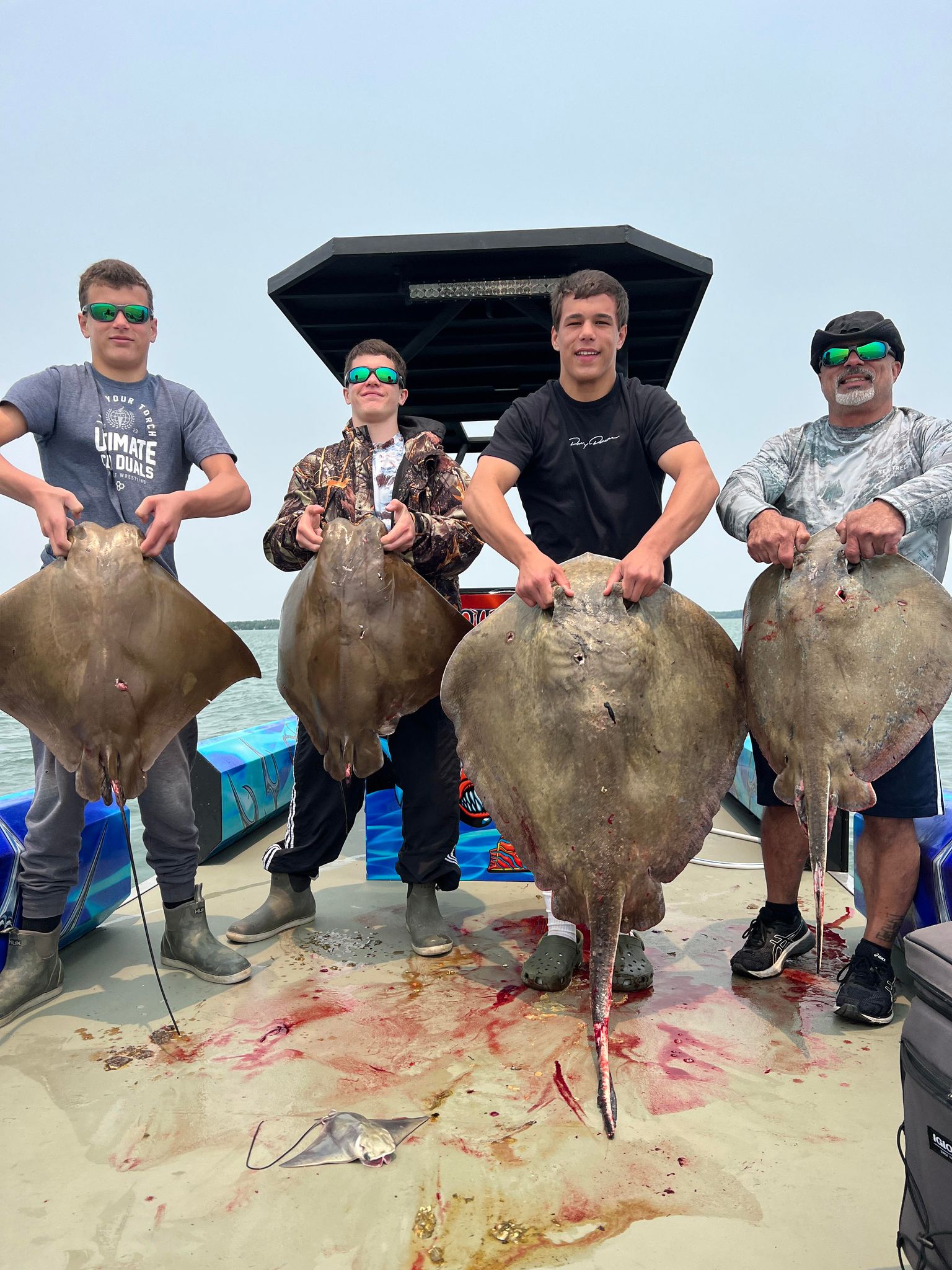 Captain Marc Spagnola of Dusk to Dawn Bowfishing has had some good shooting for cow nosed and southern rays of late and PBR bull rider Cody Nace even got in on the action.