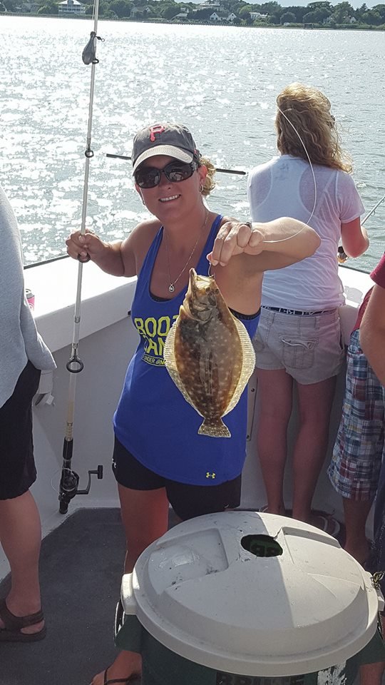 The flounder fishing in the back bay has been pretty good the past few days with nice clean water conditions. Today the Tortuga with Captain Drew Zerbe had some great throwback action and one keeper from the afternoon trip.