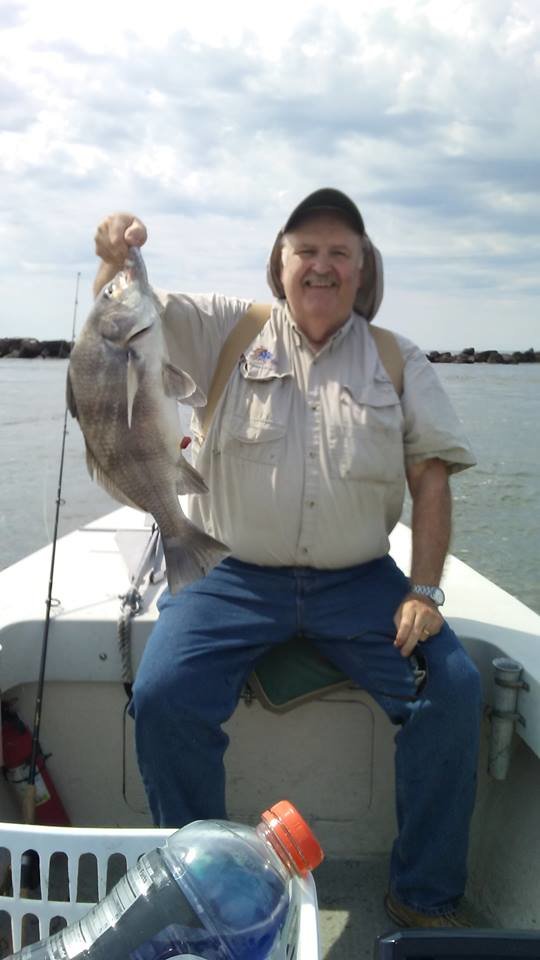 My buddy Big Bird Cropper had my other buddy Dr. Dennis, reel repairman extraordinaire from Atlantic Tackle out today. Bird put Dennis on a bunch of small rockfish, a couple of flounder two at a time and Dennis’s first black drum of 24″.