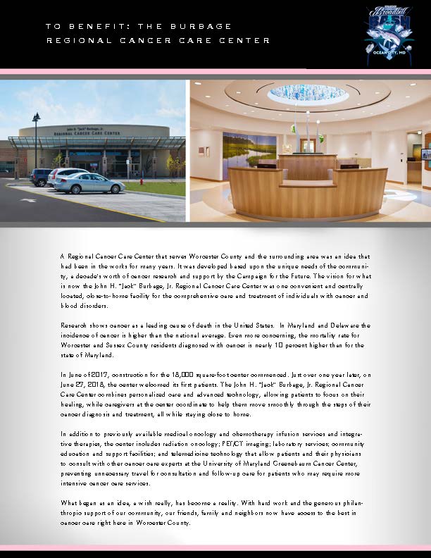 100% of the proceeds from this tournament will be donated to the Jack Burbage Regional Cancer Care Center in Berlin, MD.