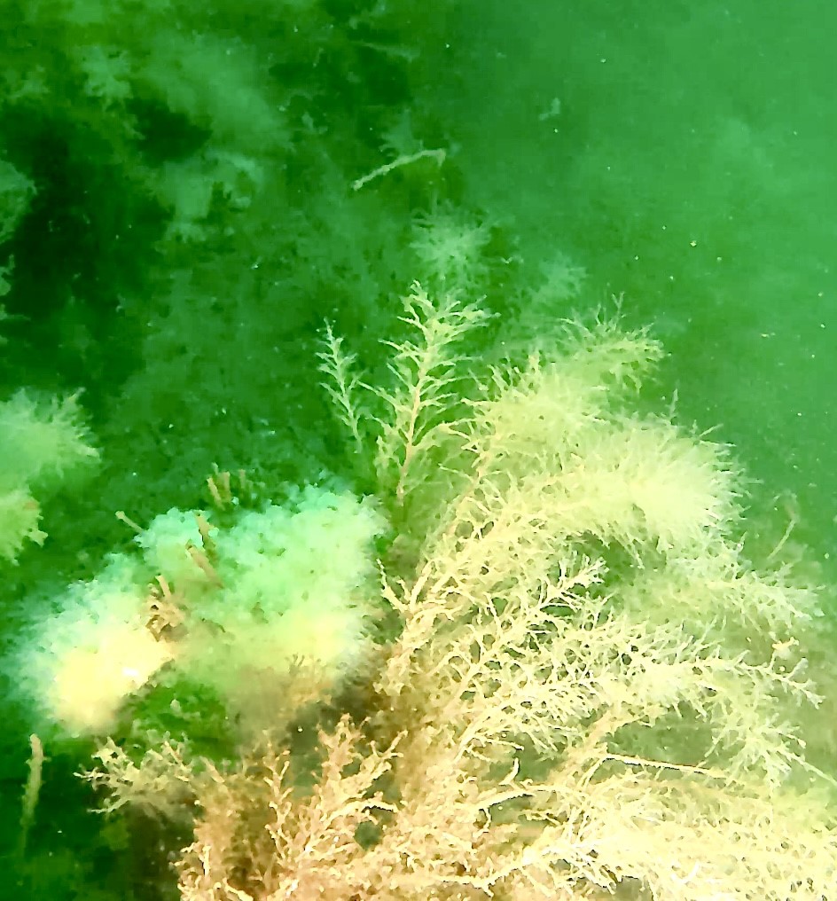 In 145 feet of water we found huge bryzoa and other growths – but no sea whip.