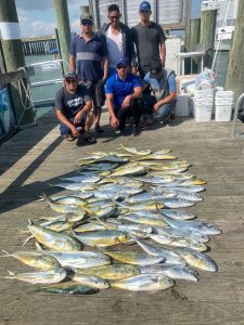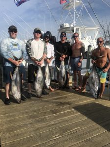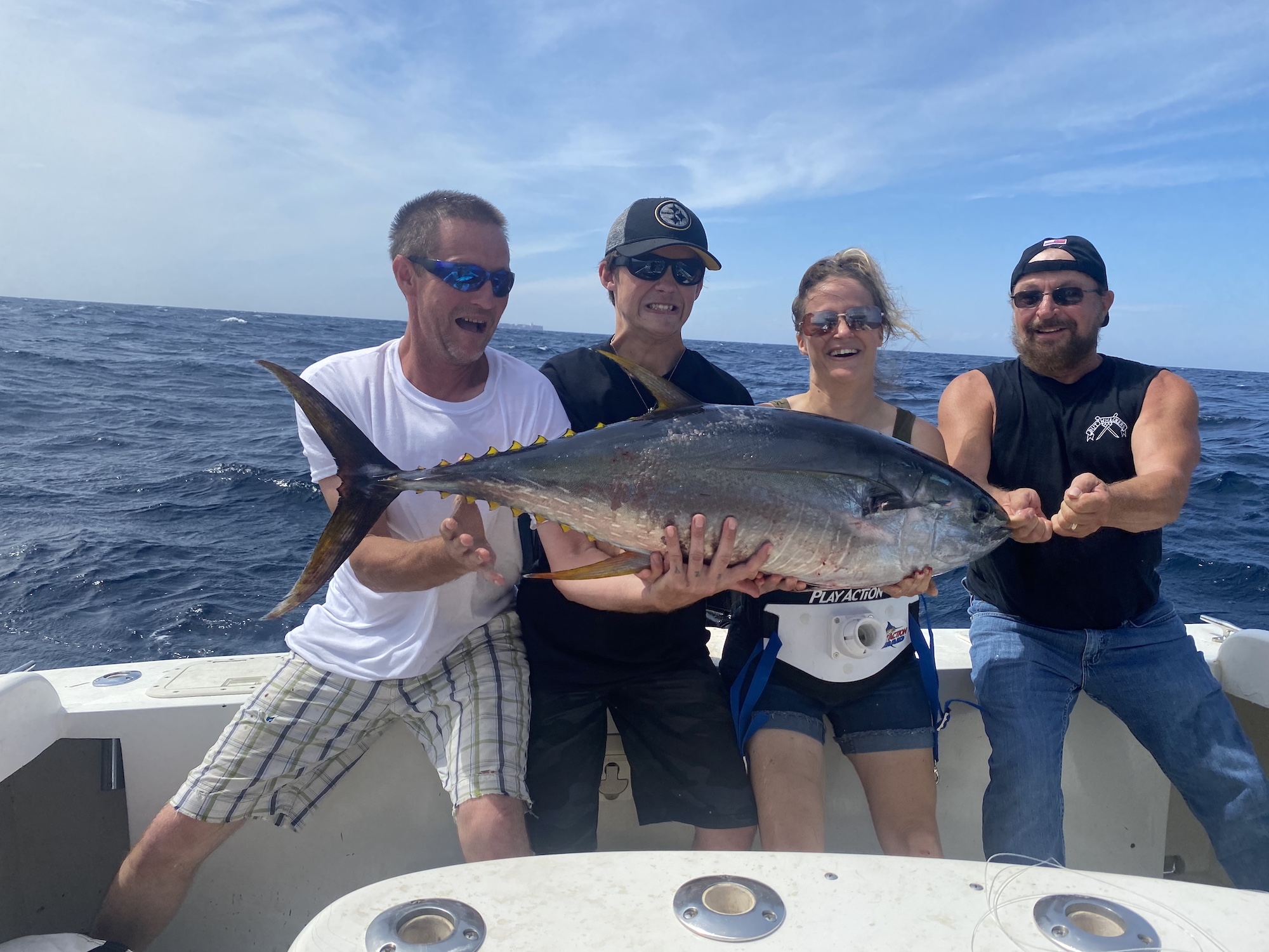 Captain Chris Watkowski and mates Ayrton Pryor and Jacob Bialik put this crew on the meat when they chunked up six nice yellowfin tuna.