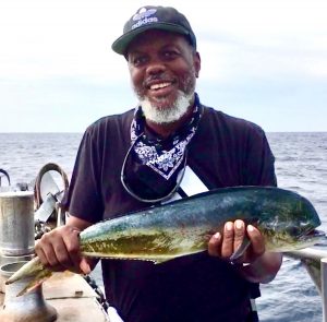 Sailed with less than 1/2 a load of clients. Keep telling folks we’re catching, dogone Covid makes sales anemic. There was admittedly some small bit of evil in today’s sea conditions. Didn’t get real bad, but then we did get in early so perhaps it developed later. As ever we dropped 4 mini tog-condos and pressed on. Our first drop was mahi-mayhem. At every stop thereafter we had at least a few. Ended up leaving early with a boat limit of mahi. My first limit ever on the inshore grounds.