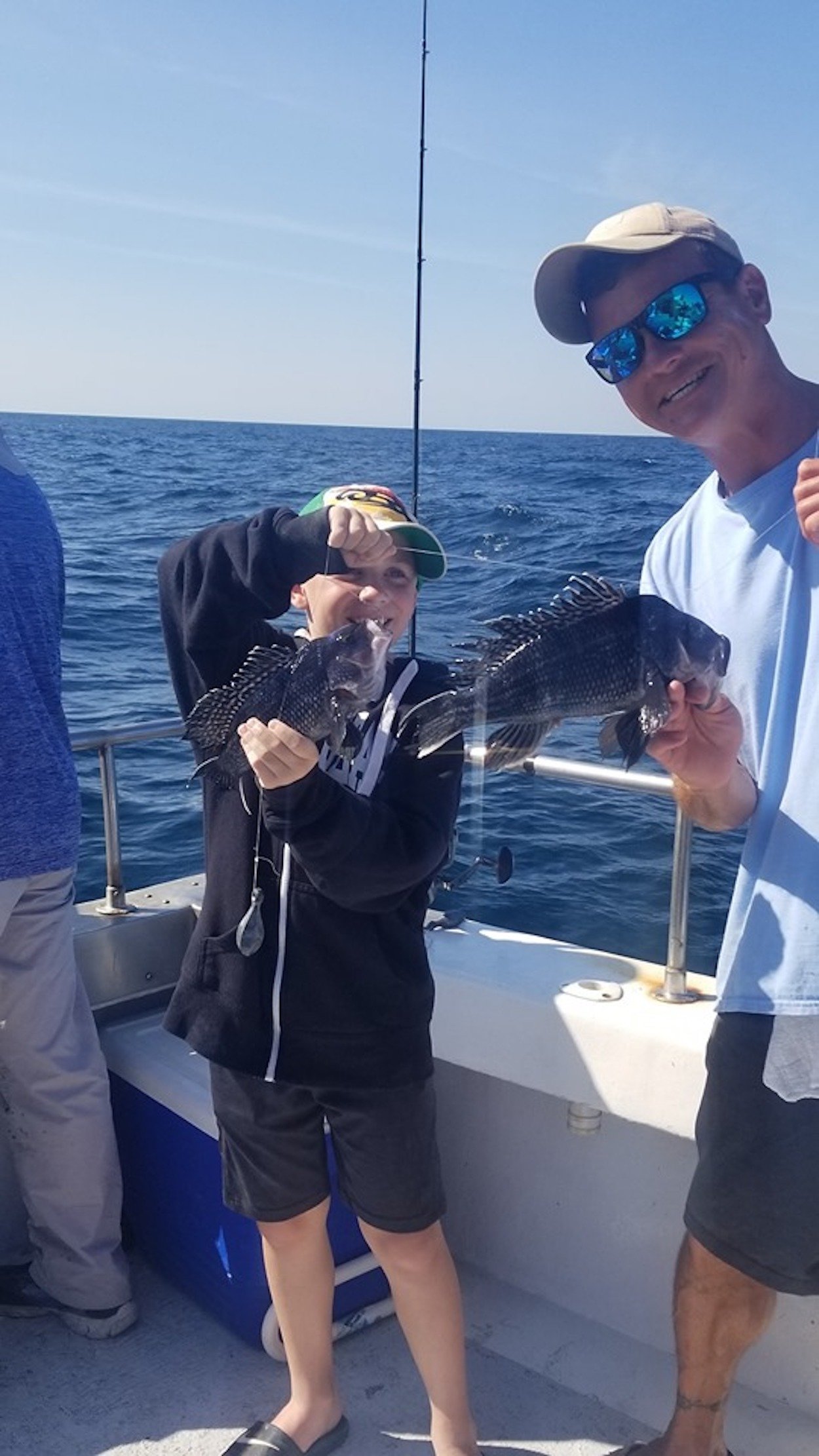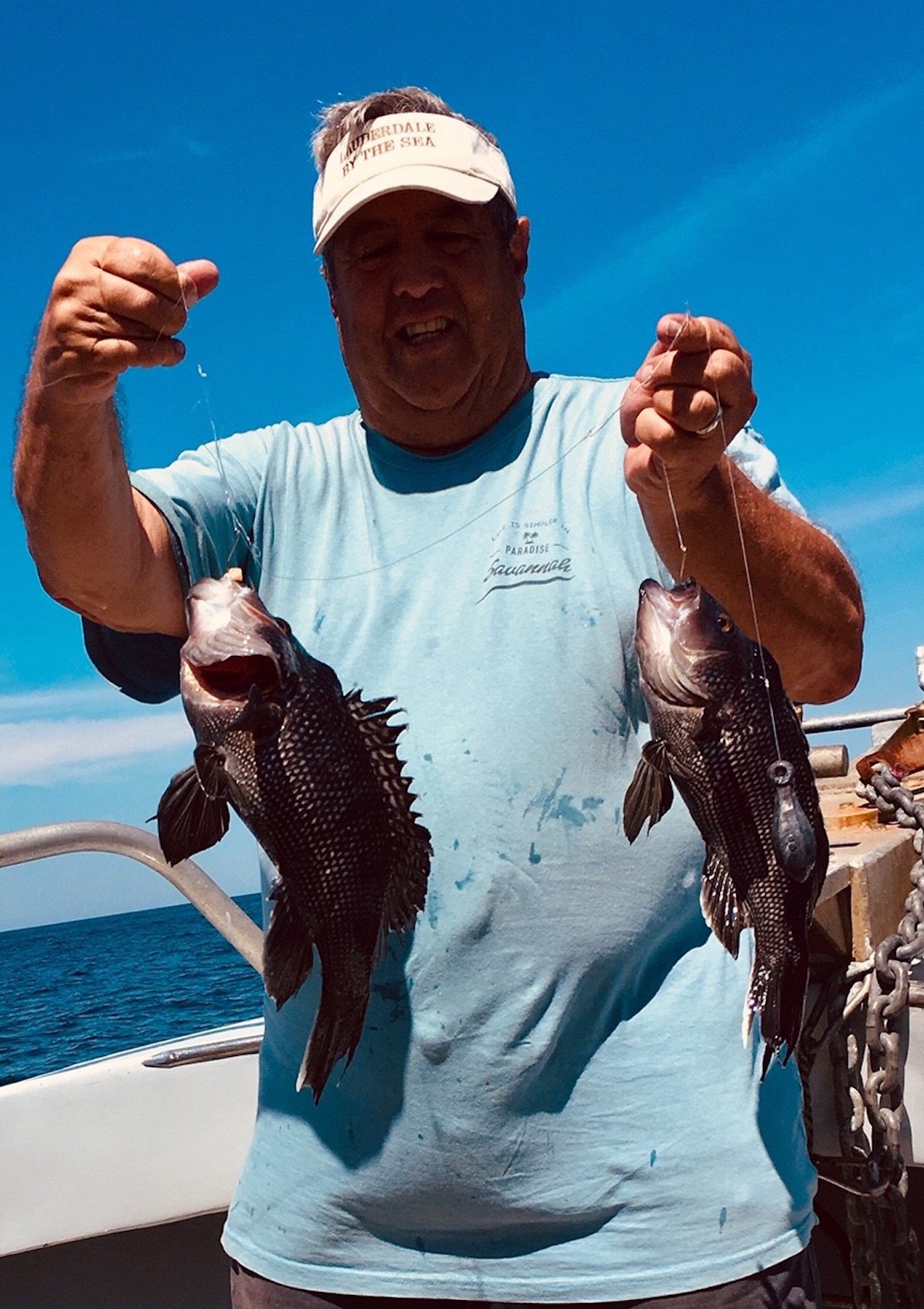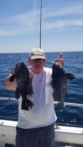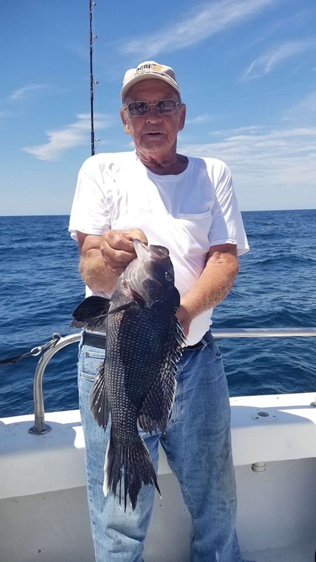Captain Chris Mizurak of the Angler reported in that the sea bass are only biting well about every two days or so….today was one of those days as some good fish came over the rail.