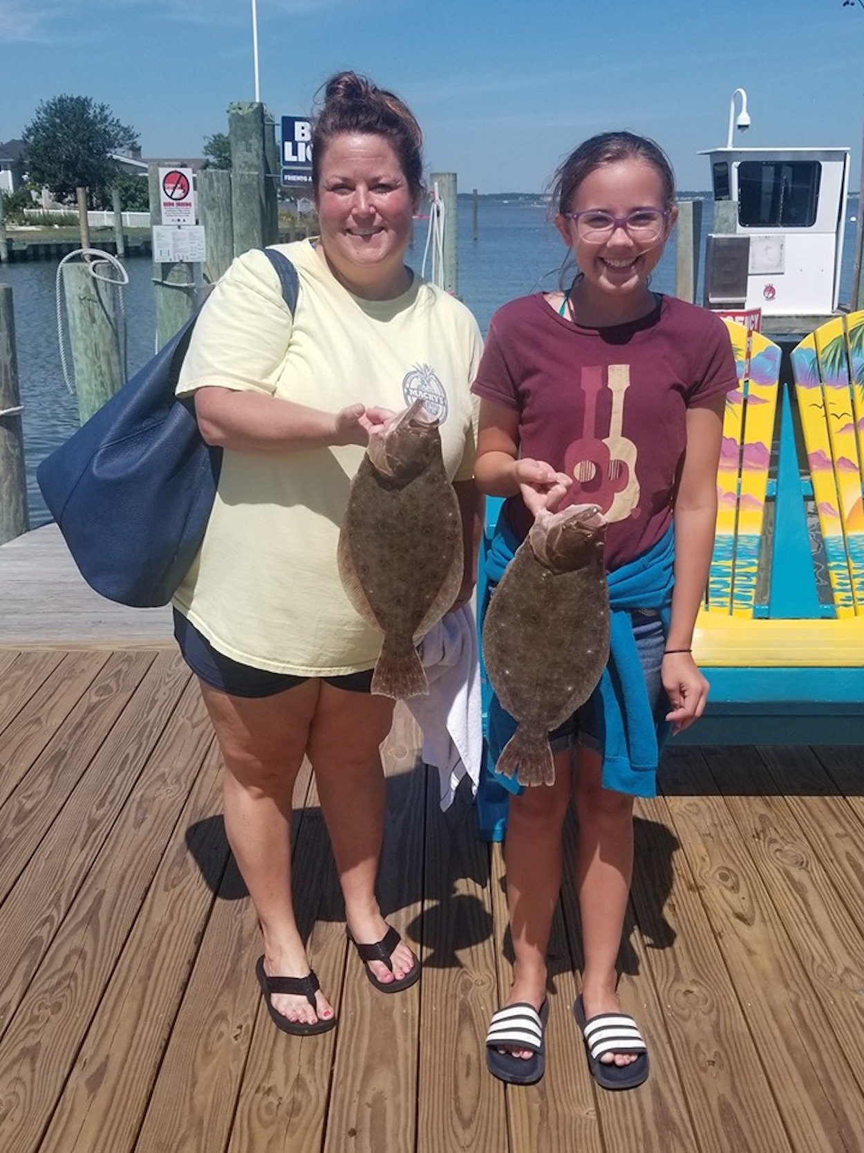 Bear down at the Oceanic Pier sent these pics of Howard who caught a keeper flounder from the pier and Christy who caught a couple of nice triggerfish.