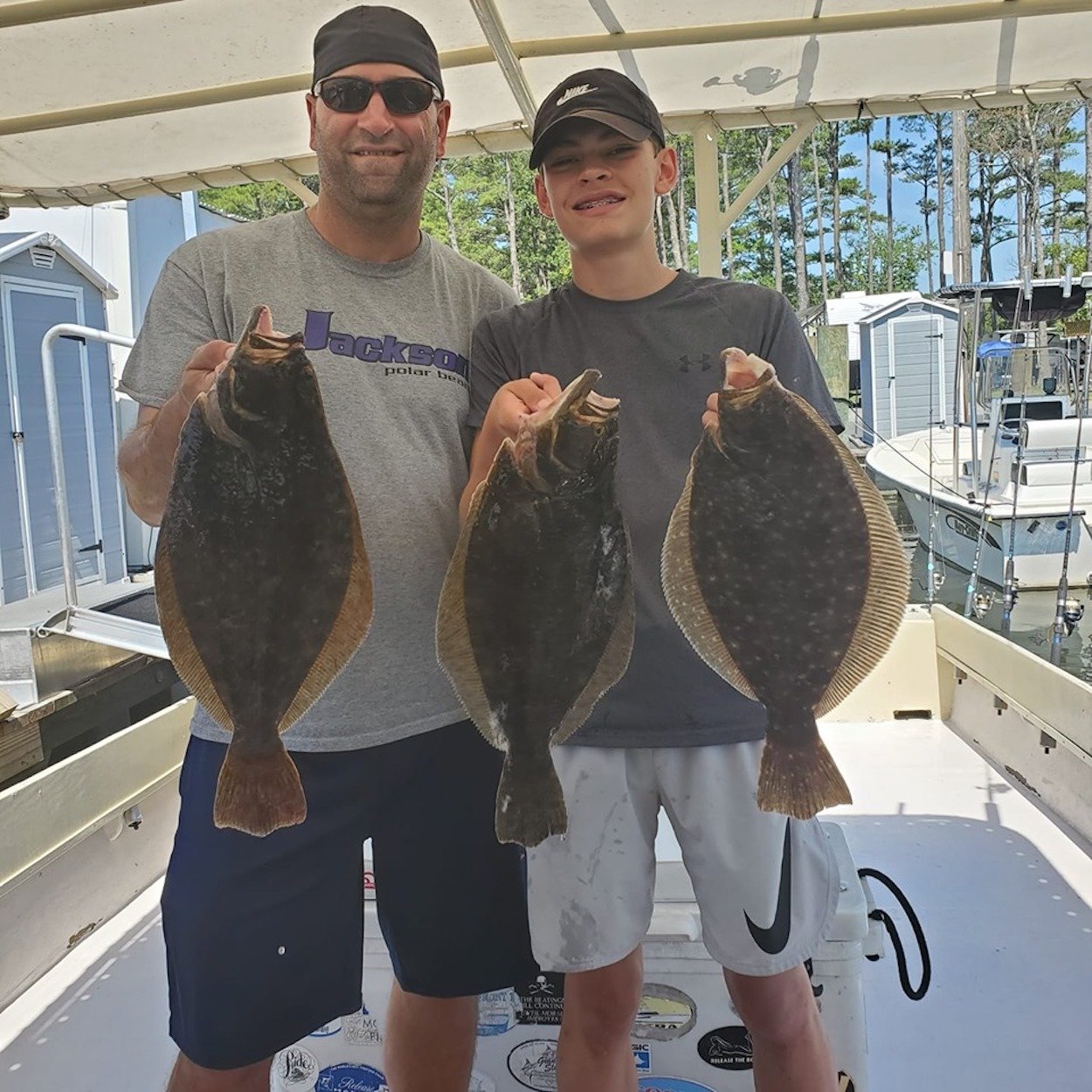 The flounder bite was pretty nice this morning for Captain John Prather of Ocean City Guide Service and his crew. Captain John used Gulp and Zman baits to put 10 keepers in the box on his morning trip on the high tide.