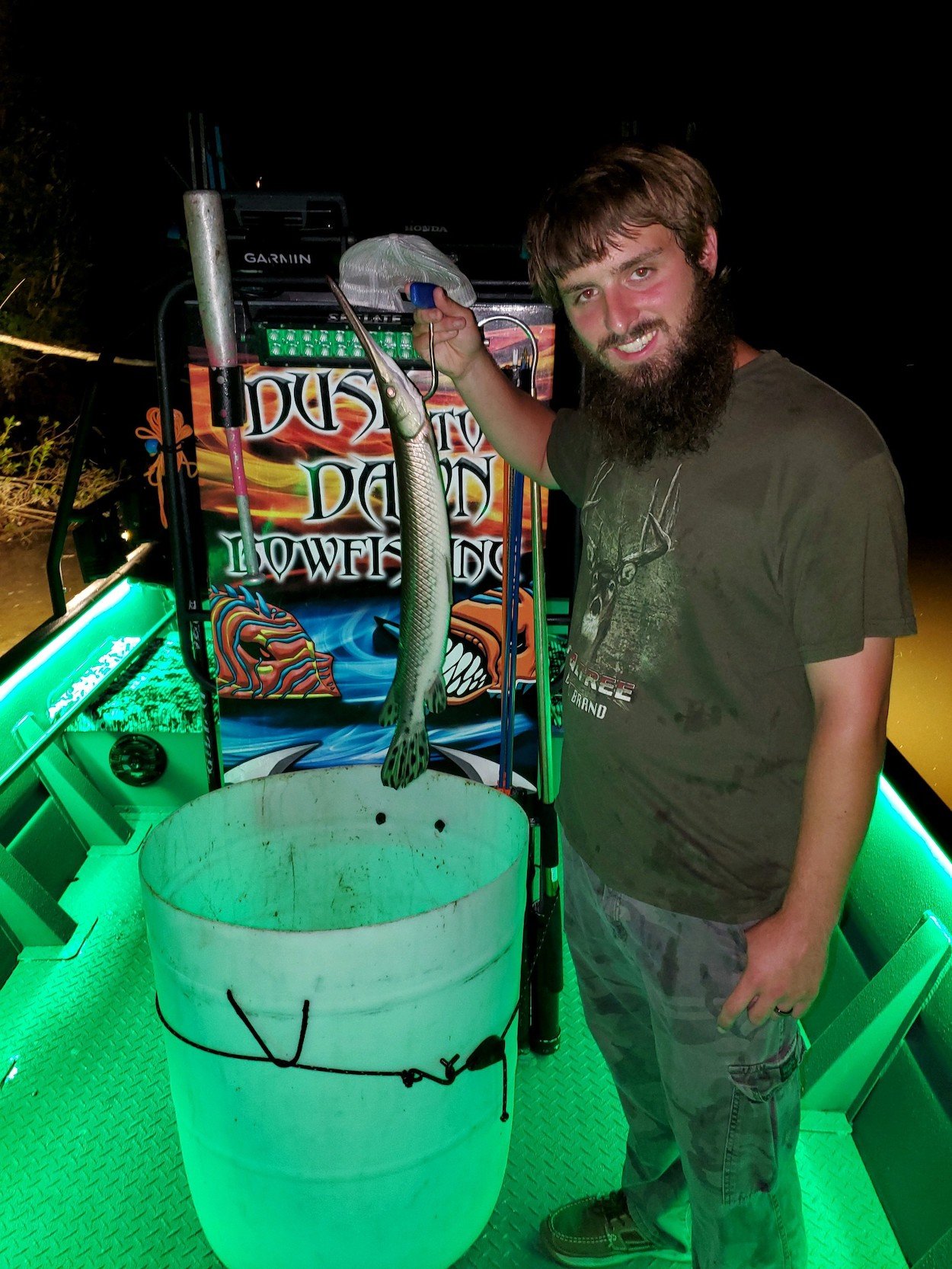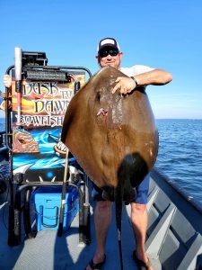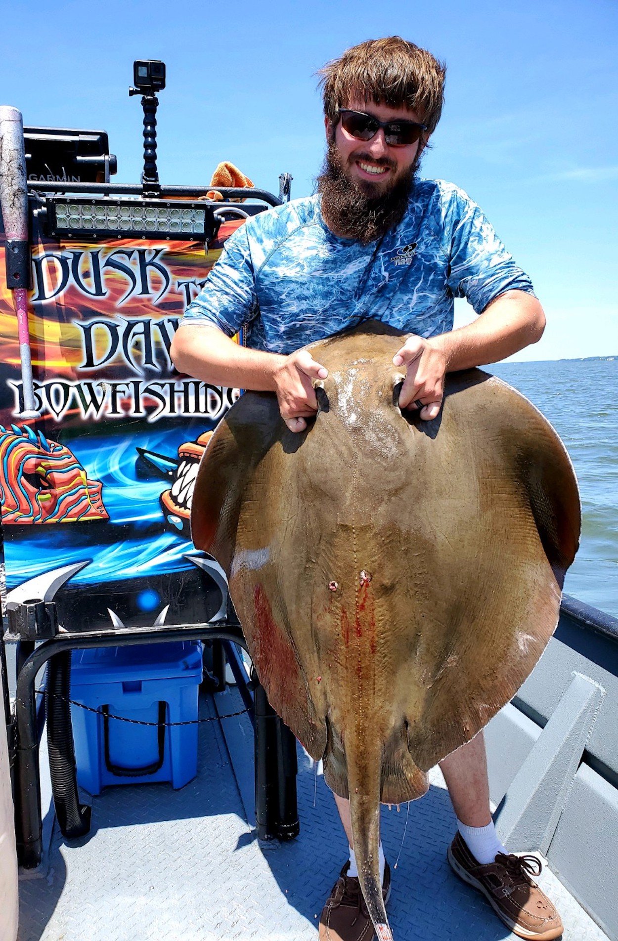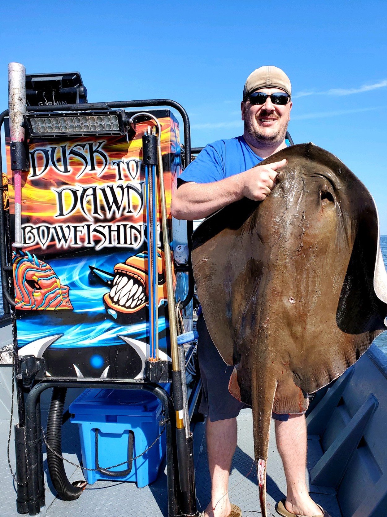 Captain Marc Spagnola of Dusk to Dawn Bowfishing has been on a tear lately. His shooters are having great action on gar at night and cow nosed and southern rays during the day.