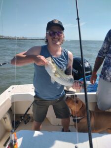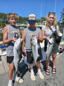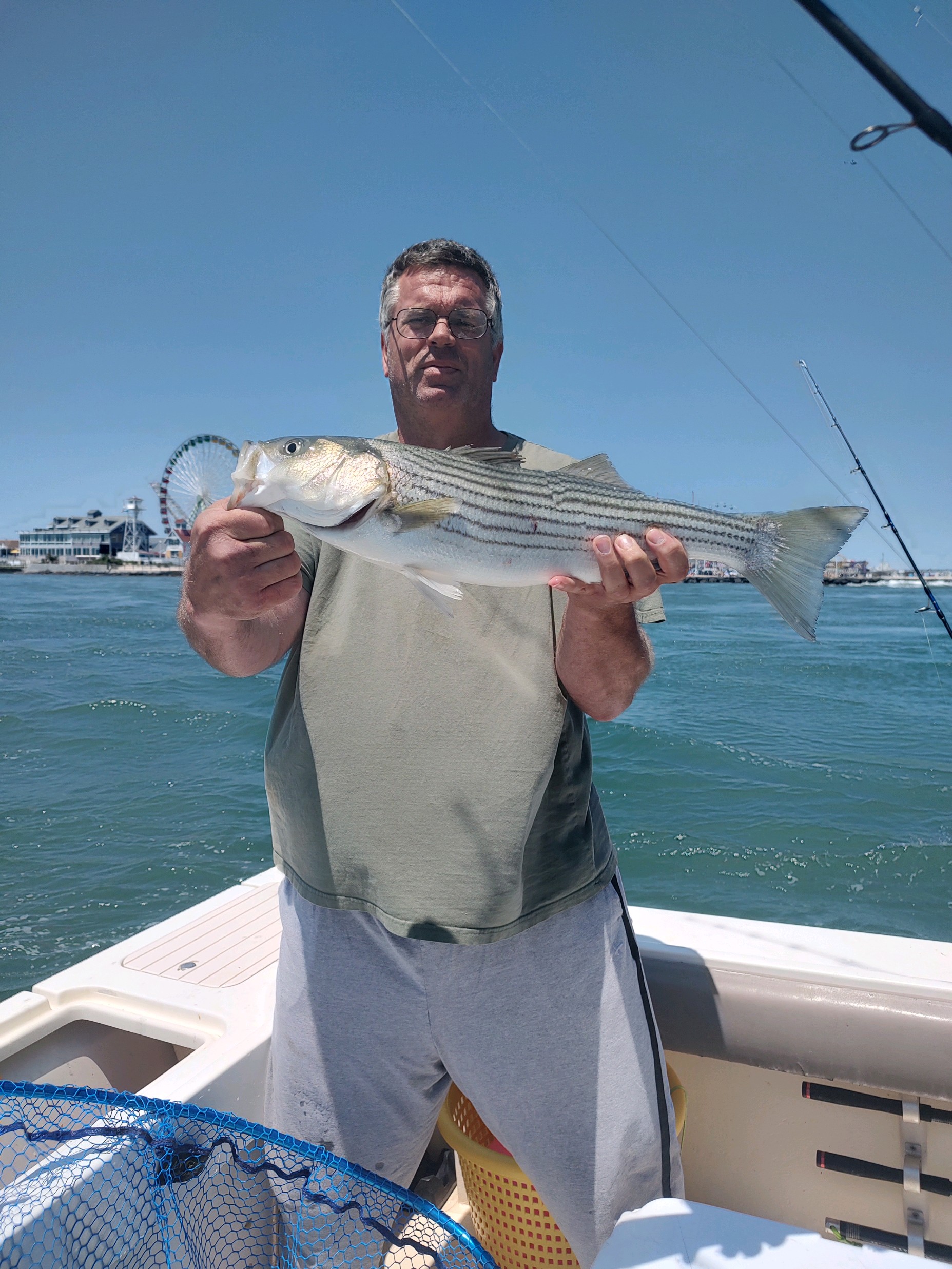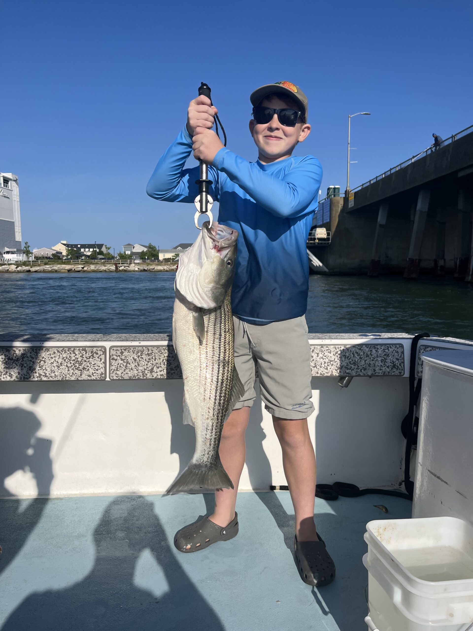 Capitan Dave Caffrey of On the Run Charters had a nice day in the OC Inlet as well with bluefish, stripers, flounder, tautog and even a kingfish on the menu for today’s anglers.