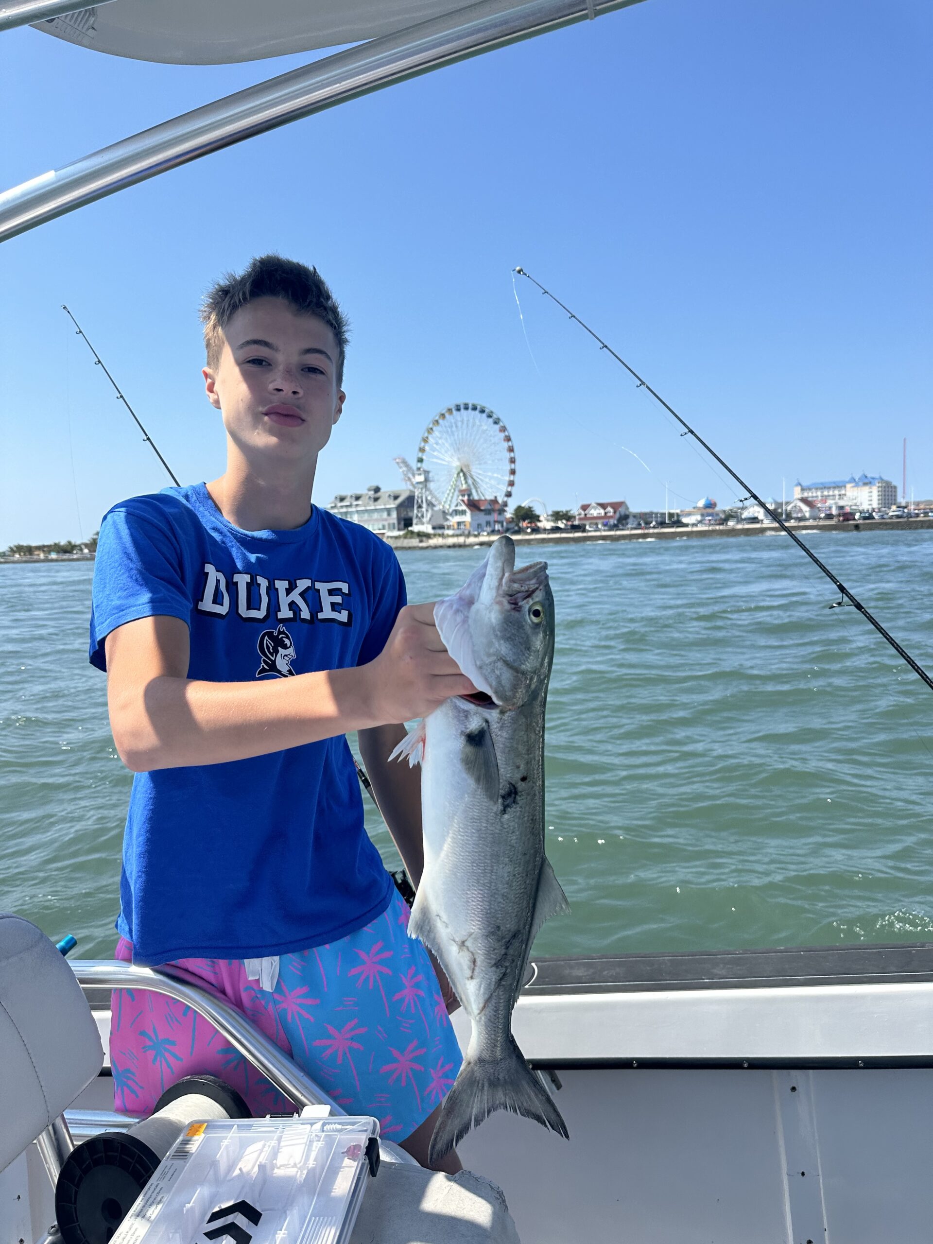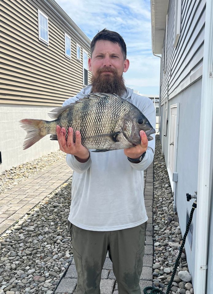 Luke Wrye caught a big bluefish at the Route 50 bridge and used the Deadly Tackle Double Header to land an 18.5″ sheepshead at the south jetty.