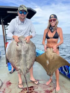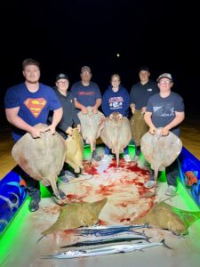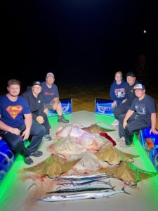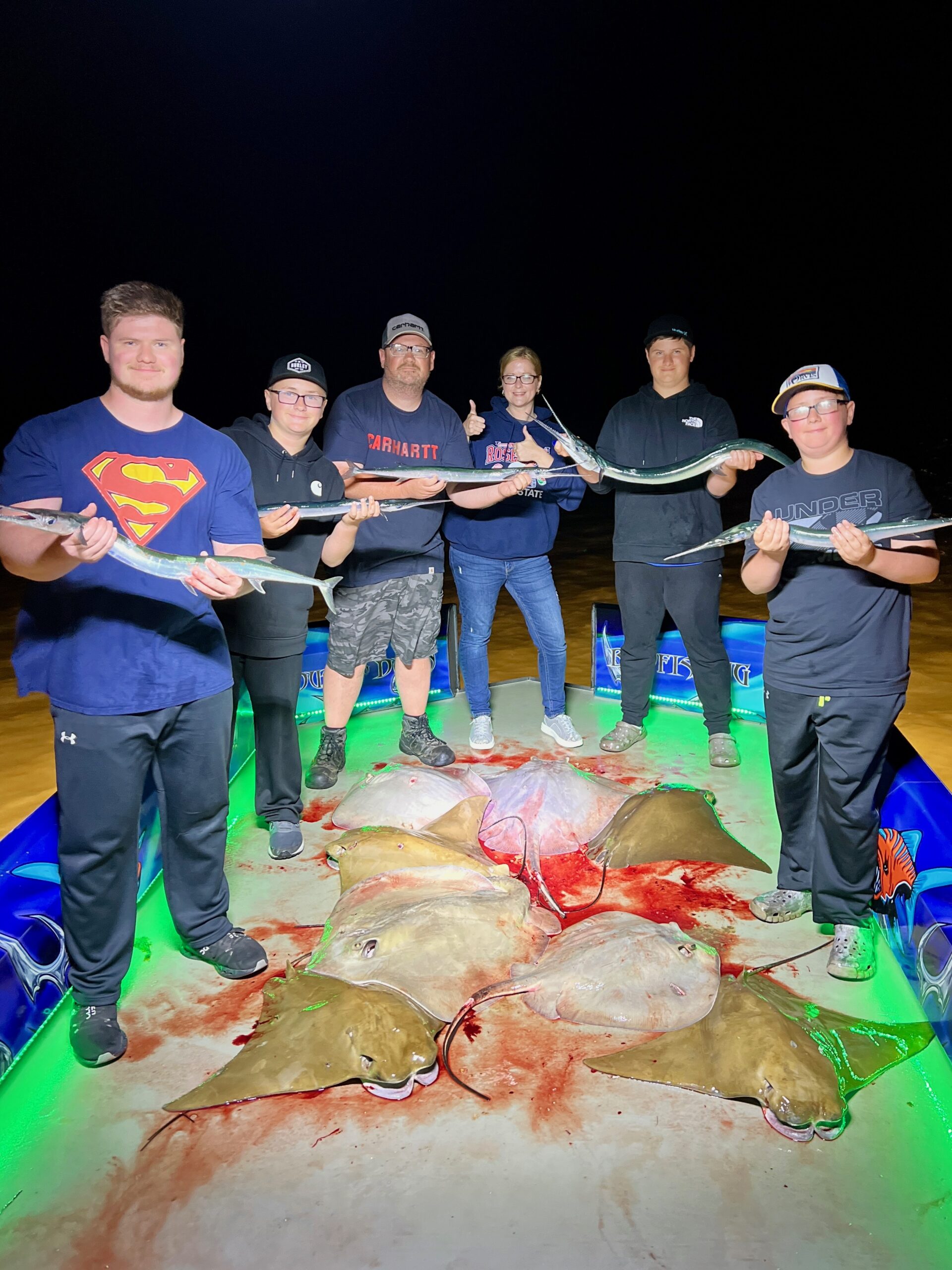 Captain Marc Spagnola is one of little sleep these days, but his clients don’t mind as they’re seeing some great shooting both day and night for rays and some big gar.