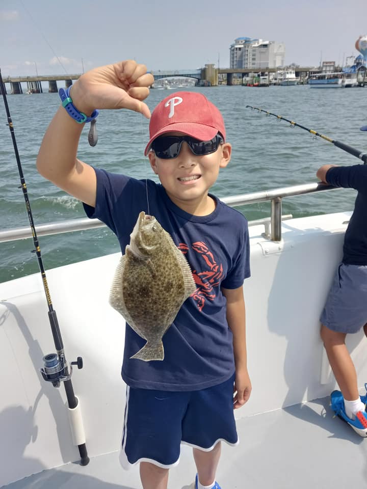 Captain Anton and mate Joey put their folks on board the Miss Ocean City on some flounder action in the bay today.