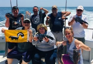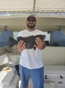 Captain Jason Mumford of Lucky Break Charters had a good day on the water with a great group today. Captain Jason had good luck on the flounder on the clean water at the top of the tide, and also had some good luck with the tautog on the rocks of the inlet. The tautog were all released….closed season.