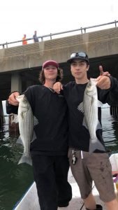 The rest of the rail seemed to do just fine. Paul Dominick of Severn MD (white T) shows off a nice double-keeper, Tracy Dunaway of Millersville MD couldn’t outfish husband Mark (he limited) but she sure put on a show at times, Bryce Landman of Dunbar PA put together a good catch with his Dad, Bruce.